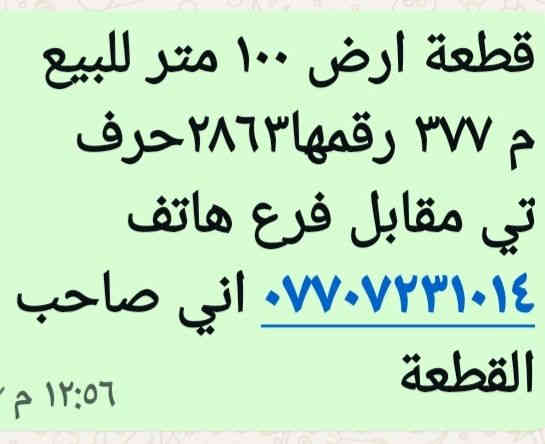 قطعة للبيع مساحة ١٠٠