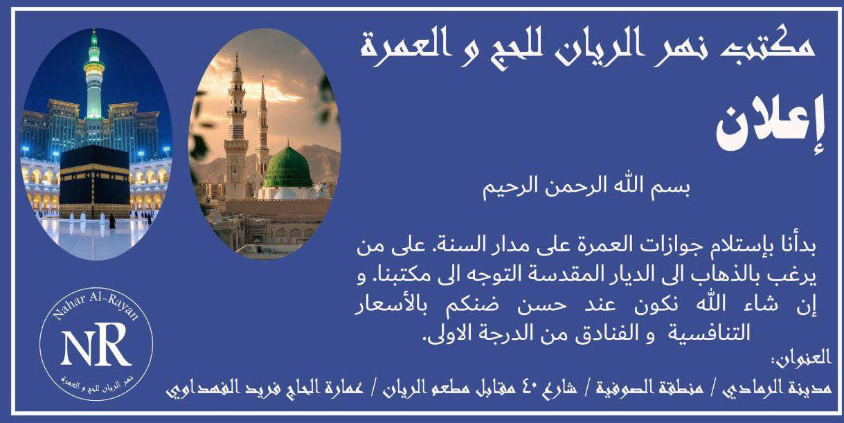 مدينة الرمادي / منطقة الصوفية / شارع ٤٠ مقابل مطعم الريان / عمارة الحاج فريد المشداعي
