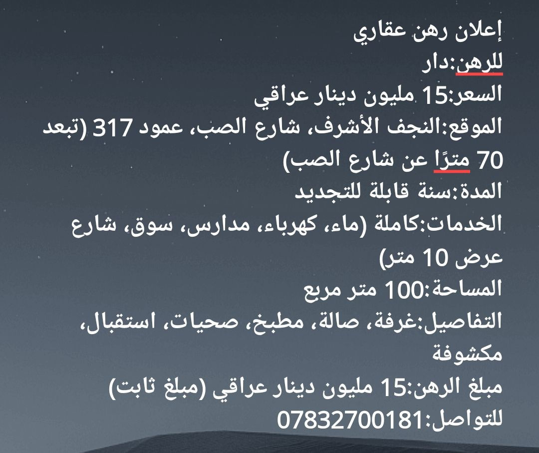 دور للرهـن • النجف الاشرف • ١٠٠م