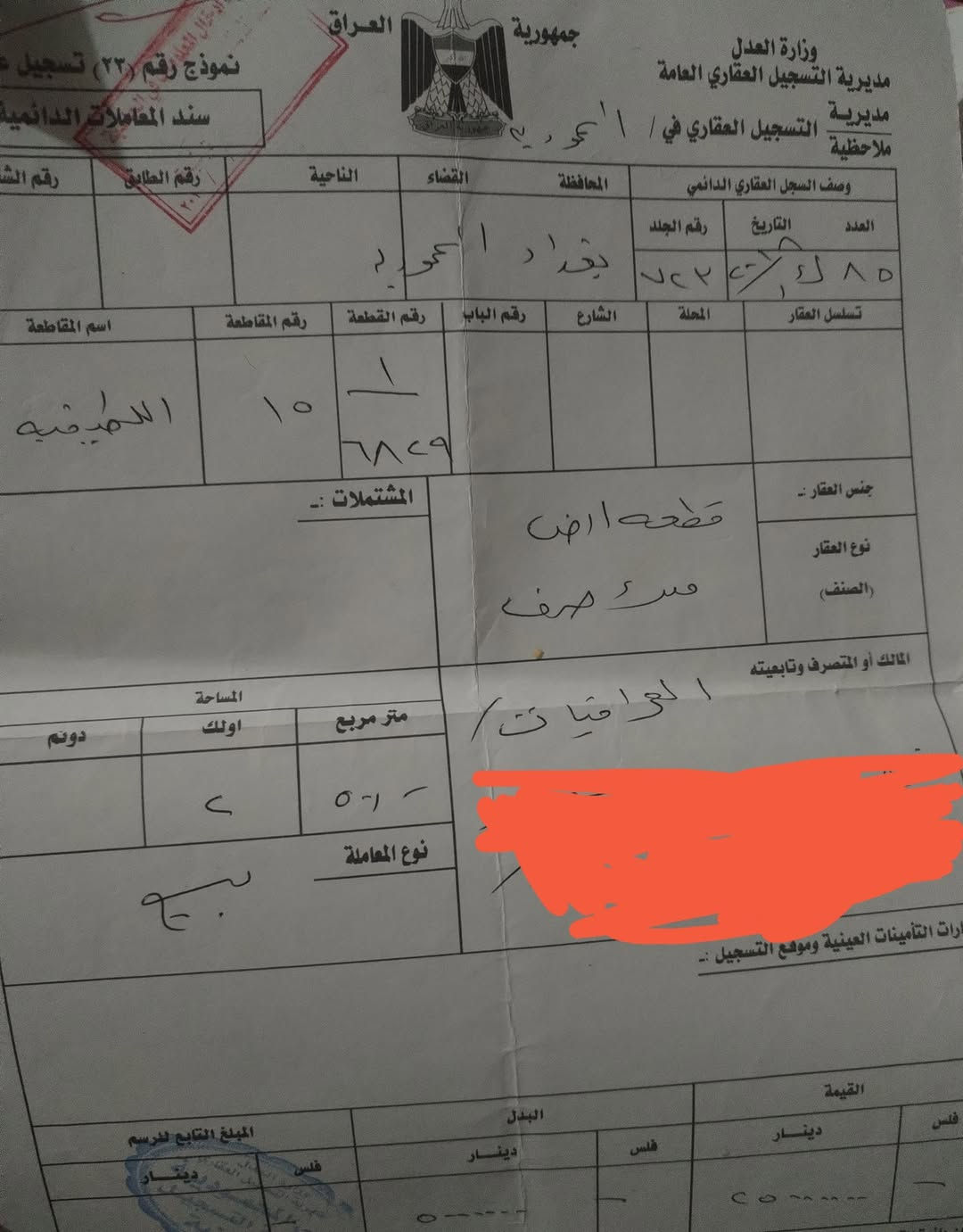 🔴السلام عليكم قطعة ارض للبيع طابو صرف. -الموقع حي القادسية. -مساحة 125متر وجه 6.25 متر نزال 20 متر. -كافة الخدمات متوفرة فيها ماء كهرباء تبليط مجاري. -البيع مباشر من صاحب القطعة. *********** متوفر واتساب أيضًا
