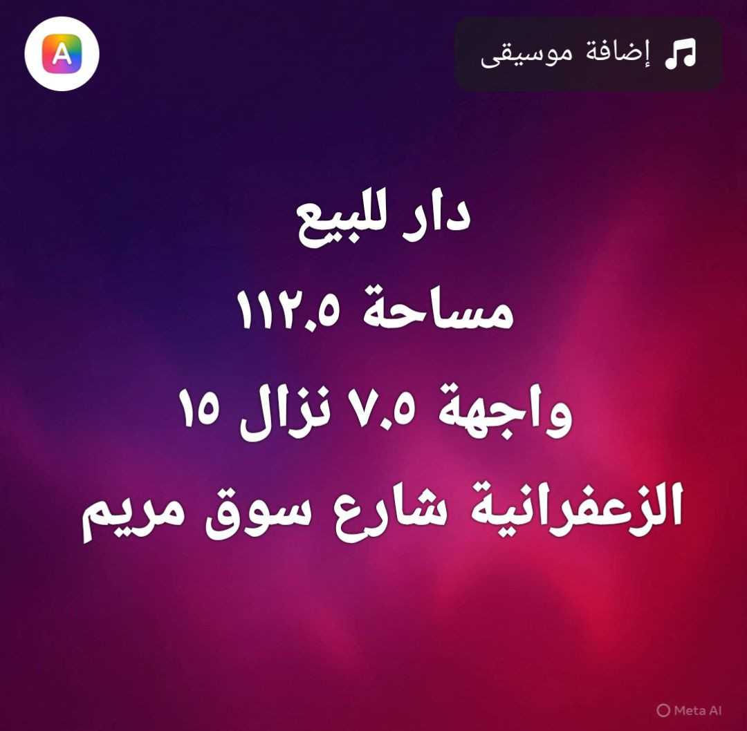 الزعفرانيه شارع الكهرباء • 98م • طابو مرتب