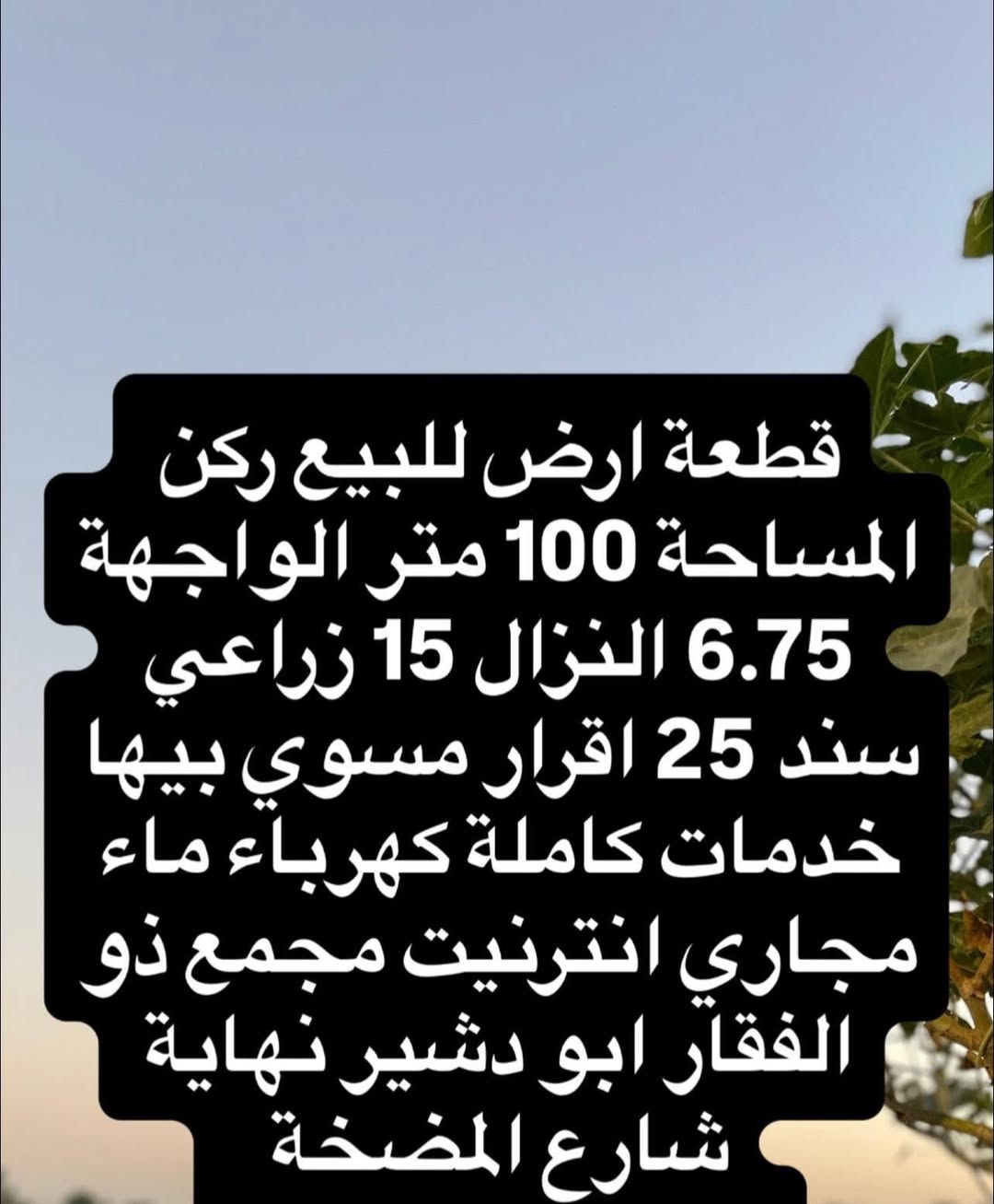 قطعة أرض • المكاسب شارع الزعيم • ١٠٠م