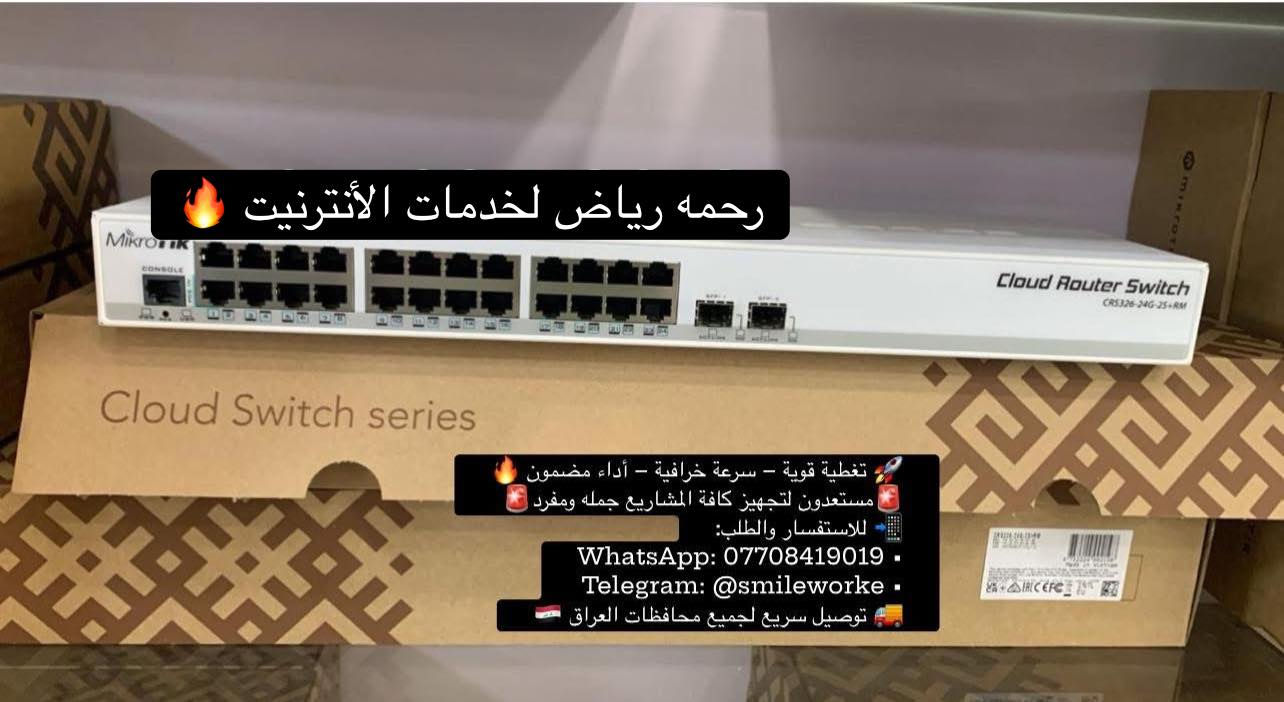 🔥 MikroTik CRS326-24G-2S+RM 🔥⚙️ سويتش احترافي لإدارة الشبكات بثبات وأداء عالي 🚀 الحل المثالي للشركات، مزودي الإنترنت، السيرفرات والمشاريع الكبيرة 📌 المواصفات الرئيسية 🔹 24 منفذ Gigabit Ethernet 10/100/1000 🔹 2 منافذ SFP+ بسرعة 10Gbps للربط السريع 🔹 يدعم RouterOS & SwitchOS 🔹 معالج قوي ARM 800MHz 🔹 ذاكرة 512MB RAM 🔹 يدعم VLAN – Trunk – Access – ACL – Port Isolation 🔹 تشغيل هادئ بدون مروحة (Fanless) 🔹 استهلاك طاقة منخفض 🔹 تصميم Rackmount 1U ⭐ ليش تختاره؟ ✔ ثبات عالي ويشيل ترافك ثقيل ✔ تحكم كامل بالشبكة ✔ مثالي للأبراج، السيرفرات، والدوائر ✔ جودة MikroTik الأصلية 💯 💼 ندعم مشاريعك سواء كانت جملة أو مفرد بأسعار تنافسية 📦 اجعل شبكتك آمنة وموثوقة مع معدات عالية الجودة ✅ لطلب والاستفسار 📲 what’s up : *********** 📲Facebook: ⬇️⬇️⬇️⬇️⬇️ https://www.facebook.com/share/1Ads31omqj/?mibextid=wwXIfr Telegram: تابعو اخر العروض على قناة ⬇️⬇️⬇️ https://t.me/FTTH_NETWORK 🚕🚕 توصيل سريع لبغداد وكل المحافظات🚕🚕 #رحمة_رياض_لخدمات_الانترنيت #رحمه_رياض_لخدمات_الانترنيت