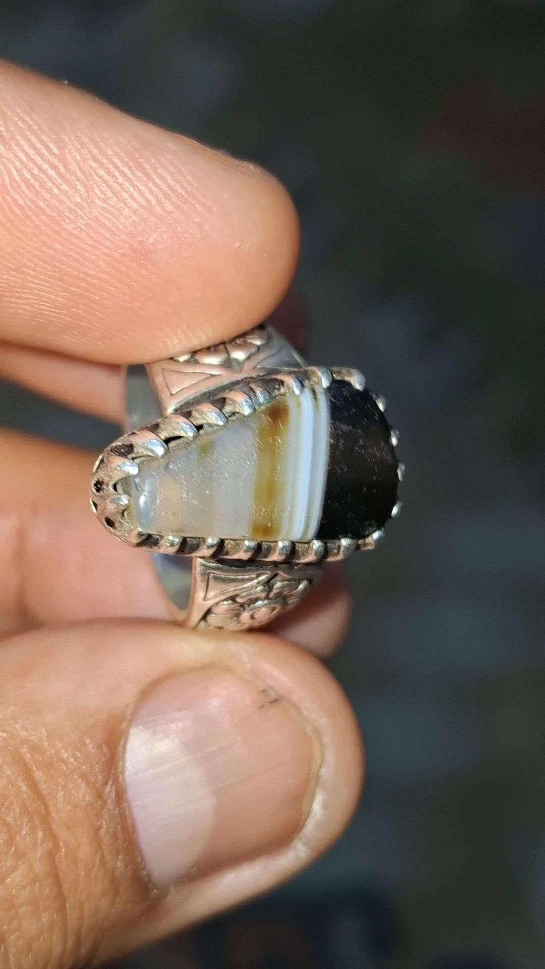 جزعة يمانية قديمة • صياغة يدوية ثقيلة • قياس ٢٤