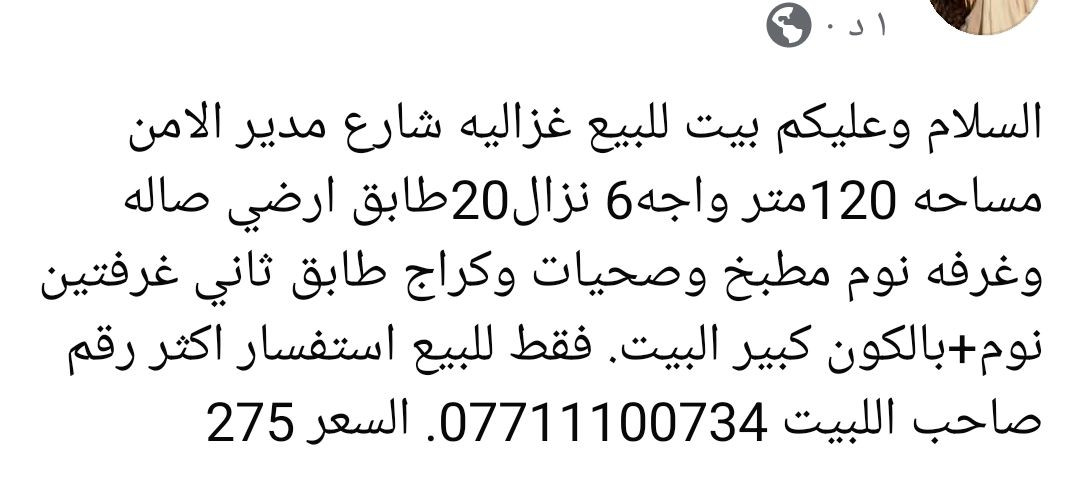 العنوان بغداد غزاليه بغداد, العراق **إذا كنت صاحب هذا الإعلان وتريد حذفه لأي سبب، رجاءا أرسل رسالة إلى الدعم الفني**