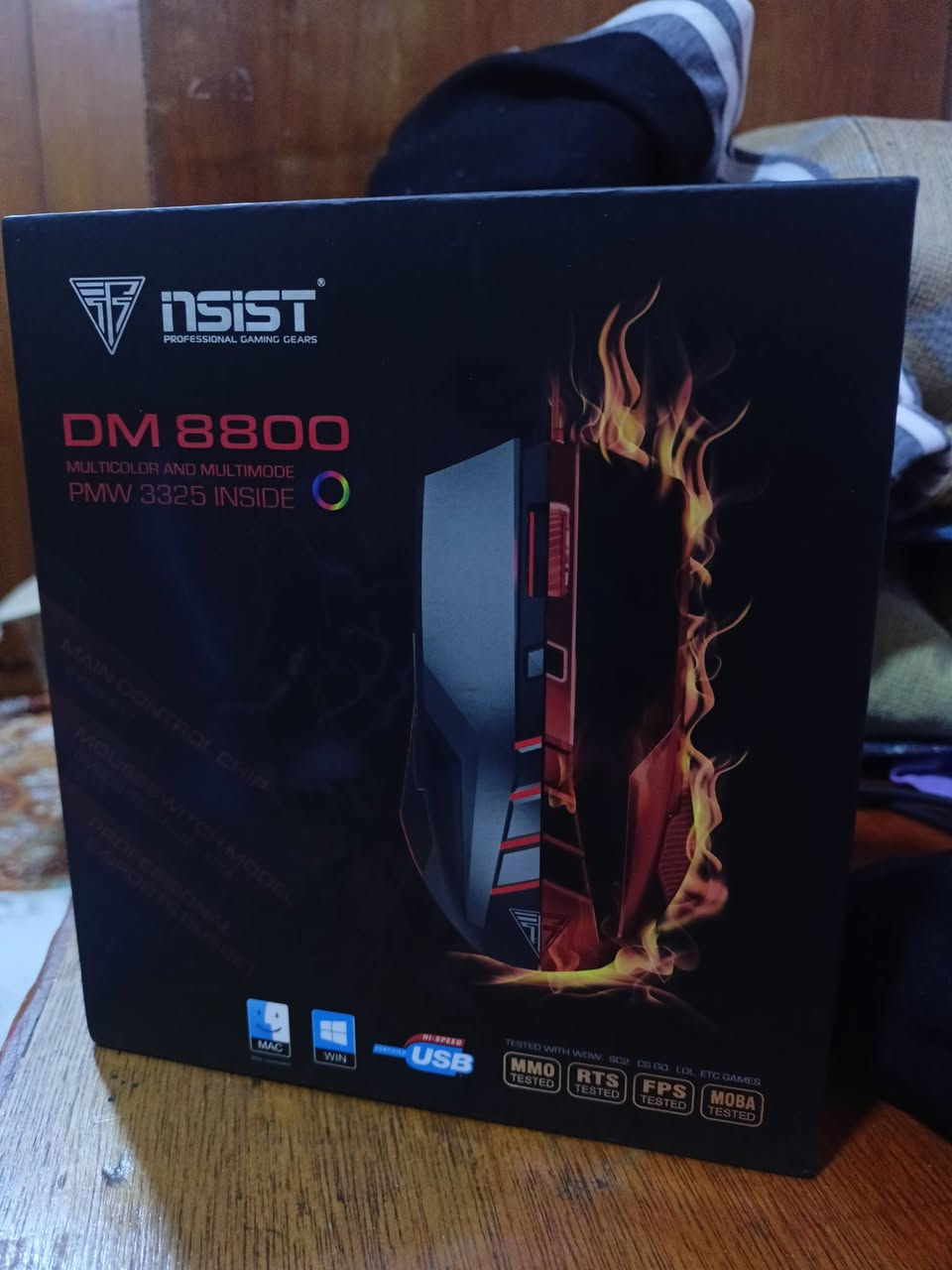 للبيع ب20 موس مستخدم. قليل السلام عليكم شباب.. عندي ماوس ألعاب (Gaming Mouse) نوع iNSiST DM 8800 مستخدم ونظيف جداً وحاب أبيعه. مواصفات الماوس: الحساس (Sensor): PMW 3325 (دقيق جداً وما يقطع بالألعاب السريعة). الأزرار: سويتشات Omron أصلية تتحمل ضغط قوي. الإضاءة: RGB ألوان متعددة وشكله كلش حلو بالليل. الأداء: ممتاز لألعاب الـ FPS (مثل ببجي وكول اوف ديوتي) والـ MOBA. الحالة: نظيف وشغال 100% وما بيه أي عطل فني. الملحقات: العلبة الأصلية موجودة (مثل ما موضح بالصورة). **إذا كنت صاحب هذا الإعلان وتريد حذفه لأي سبب، رجاءا أرسل رسالة إلى الدعم الفني**