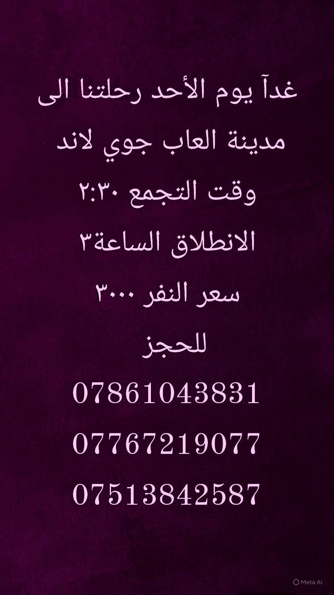 مقاعد محدودة • انطلاق ٢/٥ ٩م • الكاظمية كربلاء نجف