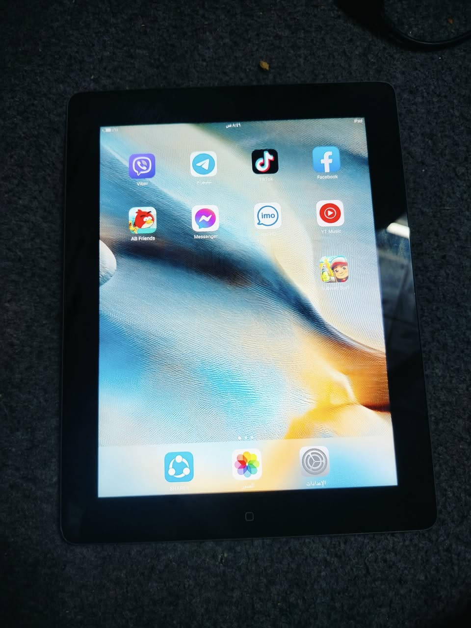 ايباد للبيع ذاكرتها 64 مثل ما موضح بالصورها جديد يجي وياها كيبل مال شحن مالتو حط سعرك بما يرضي الله وبلعافيه عليك ودخل خاص **إذا كنت صاحب هذا الإعلان وتريد حذفه لأي سبب، رجاءا أرسل رسالة إلى الدعم الفني**