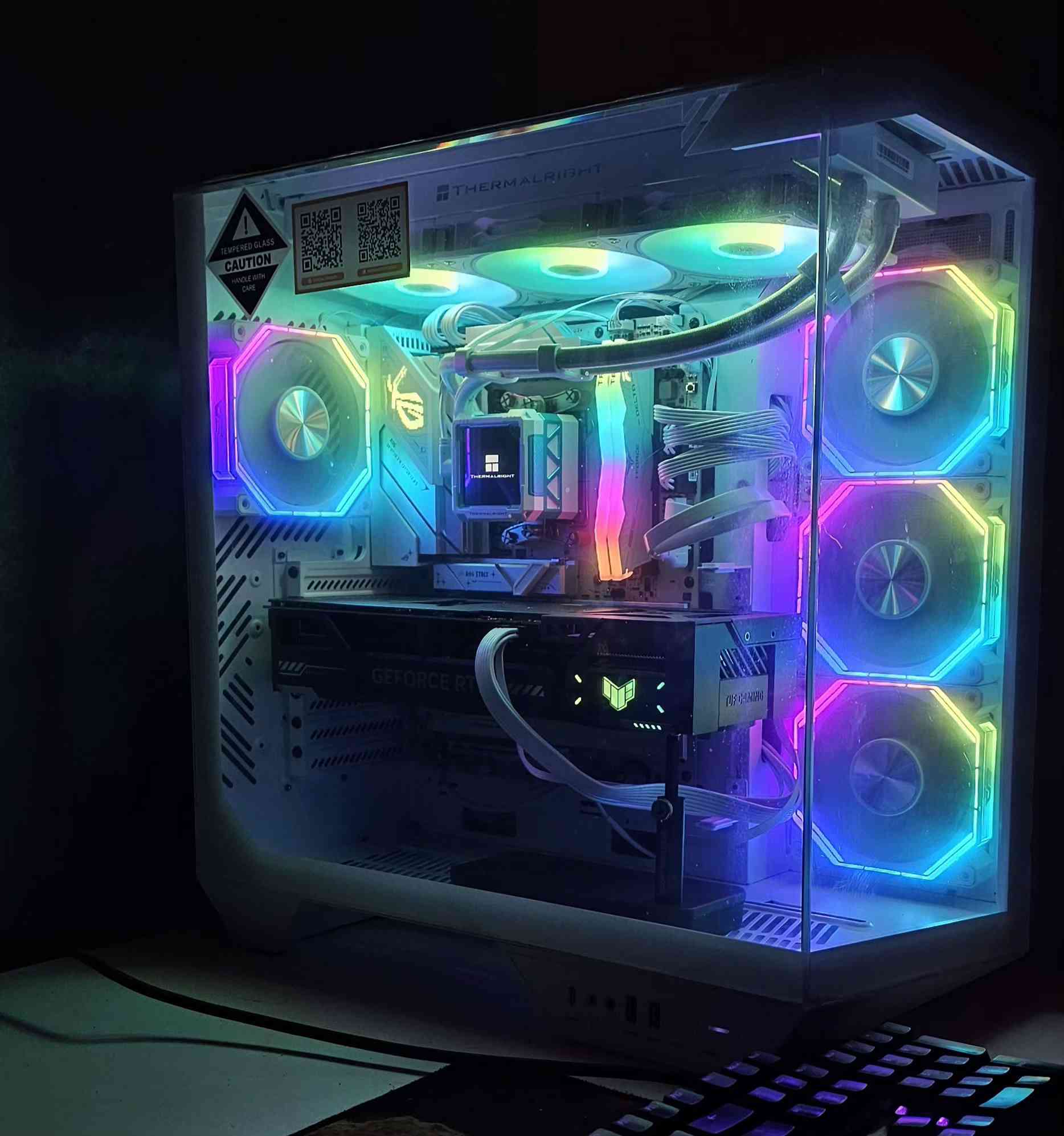 1 R7 7800X3D Processors 2 MB ASUS ROG STRIX B850-A GAMING WIFI 3 VGA PC CARD ASUS TUF Gamning RTX 5070 OC Edition -12G8 4 DDR5 PC Toam Group Della 3268 (16x2) 6000 CL3B RGB Whit 5 NVMe LEXAR NM790 1TB - 7400MB/s GEN 4 6 PSU POWER SUPPLY Segotep GM850W Gold Full Modular - Whit 7 Thermalright Frozen Warframe PRO 360 ARGB Liquid -White 8 DarkFlash DY470 Mid Tower Case - White استخدام 5 اشهر ***********