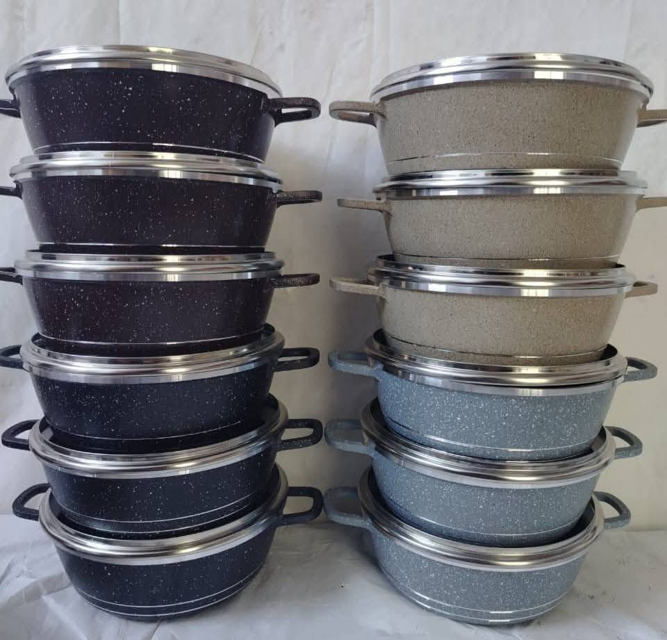 سيت كرانيت ماروني • ٦ كدورة ٢ طاوات • مقاسات ٢٨،٢٤،٢٠،١٨،١٦،١٤