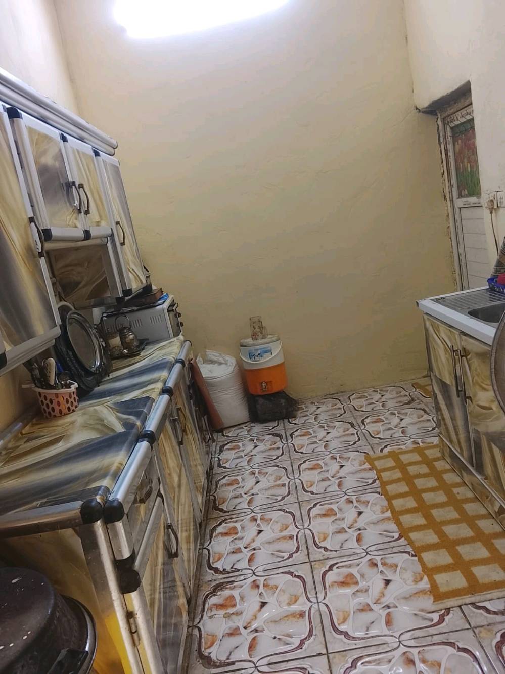 بيت ١٠٠ متر ٥×٢٠ بناء طابق ونص طابوق صب مسلح استقبال و مطبخ و صالتين و غرفتين و ثلاث مجاميع صحيه في الأمن الداخلي قرب ابو وليد المضمد