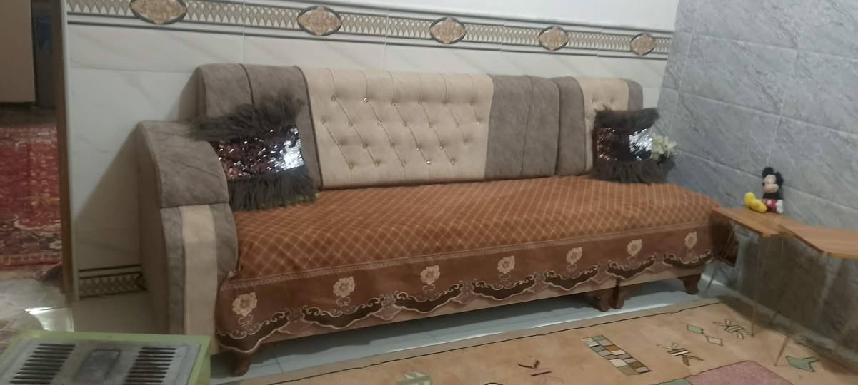 كنب ١٠ مقاعد • نضيف • رجل وحدة مكسورة