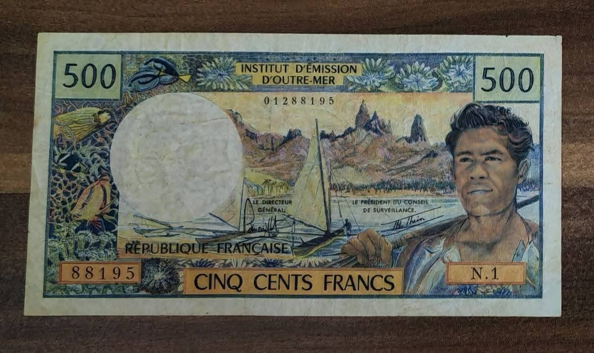 السعر ٢٥ الف نهائي رجاءا التسليم عند ابو عبير ب المتنبي او السيد زيد حسن بالميدان عند الحجز يرجى ذكر الاسم ومكان الاستلام ورقة نقدية من فئة 500 فرنك من الأراضي الفرنسية في المحيط الهادئ، صادرة عن معهد إصدار ما وراء البحار (IEOM) تحمل الورقة النقدية اسم الجمهورية الفرنسية والمعهد المُصدر إنها عملة ملغاة، مما يعني أنها لم تعد تحمل قيمة نقدية للتبادل في البنوك الرسمية، ولكن قد تكون لها قيمة نقدية (لهواة جمع العملات) كان التصميم المحدد جزءًا من سلسلة تم تداولها بين عامي 1985 و1996 تقريبًا العملة المستخدمة في بولينيزيا الفرنسية والمحميات الفرنسية المجاورة هي الآن فرنك CFP (XPF) **إذا كنت صاحب هذا الإعلان وتريد حذفه لأي سبب، رجاءا أرسل رسالة إلى الدعم الفني**