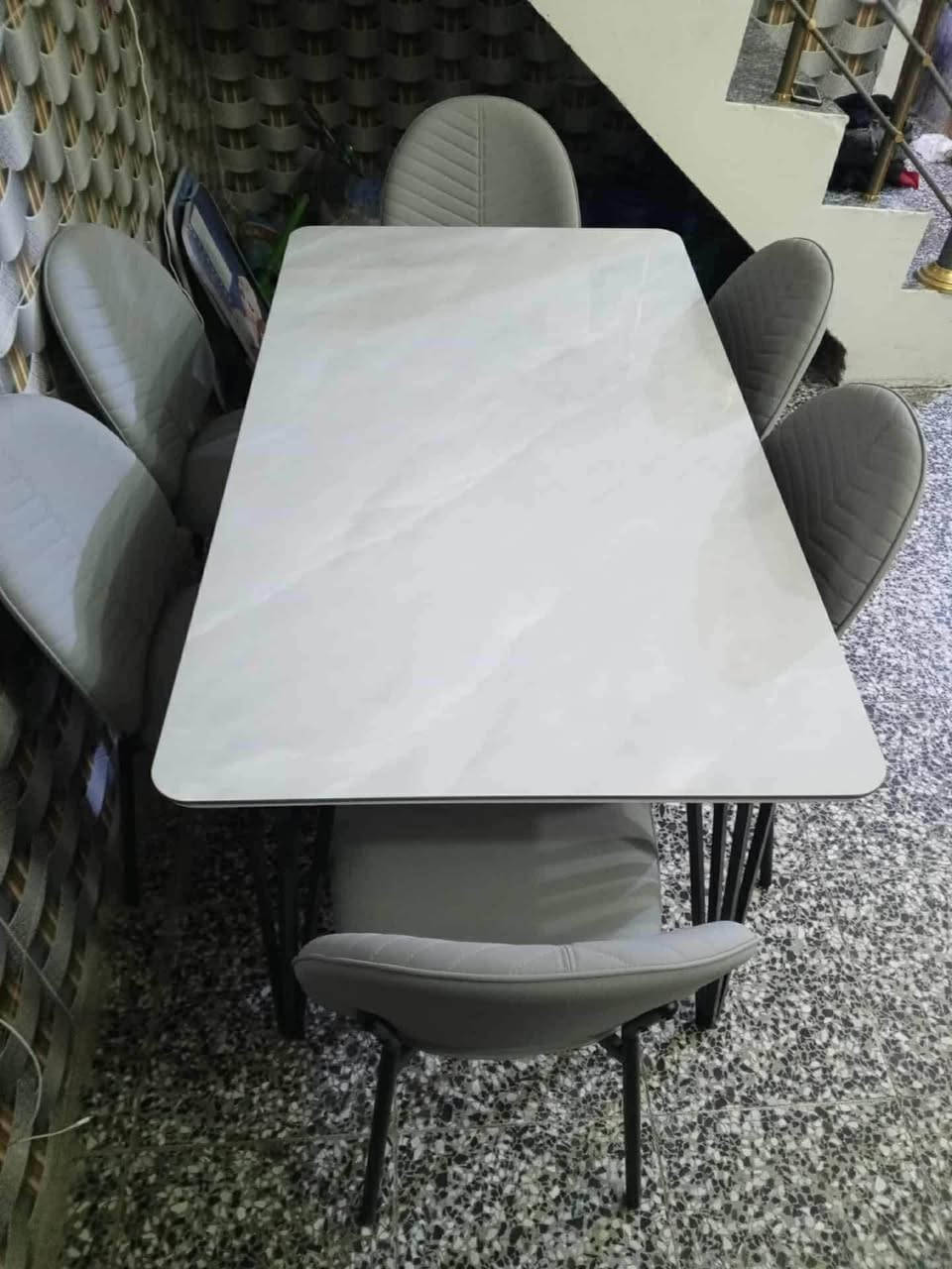 ميز طعام • ٦ كراسي جلد • سطح مرمر