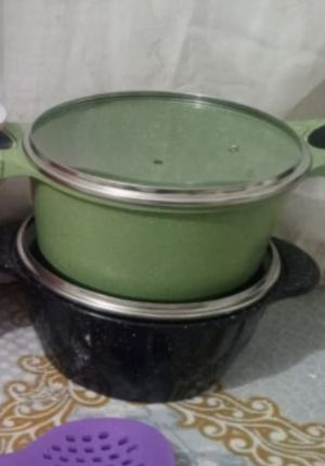 طقم قدور مينا • ٥ قطع • أغطية زجاجية