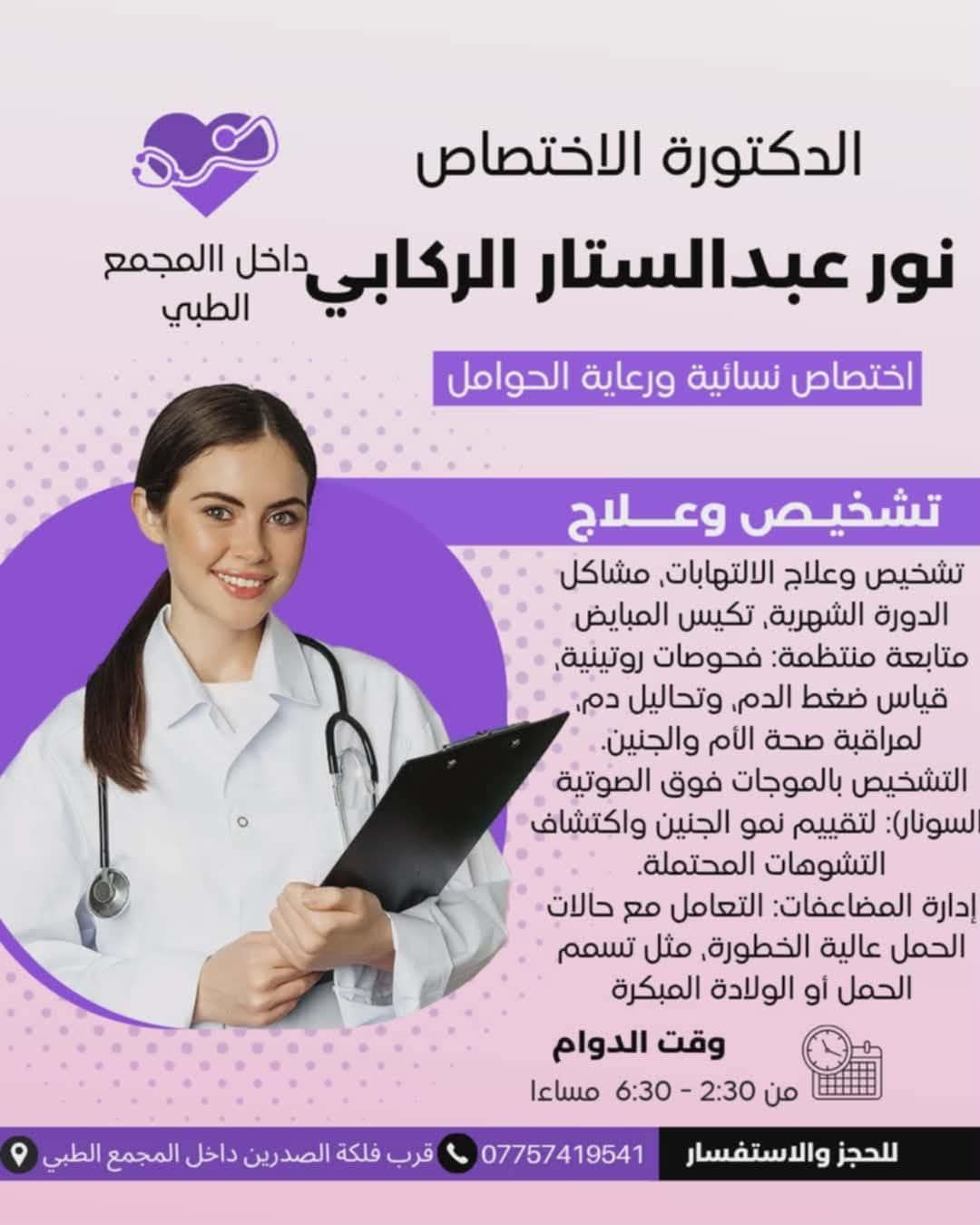 تتواجد الدكتوره غدا مساء..رقم الحجز***********