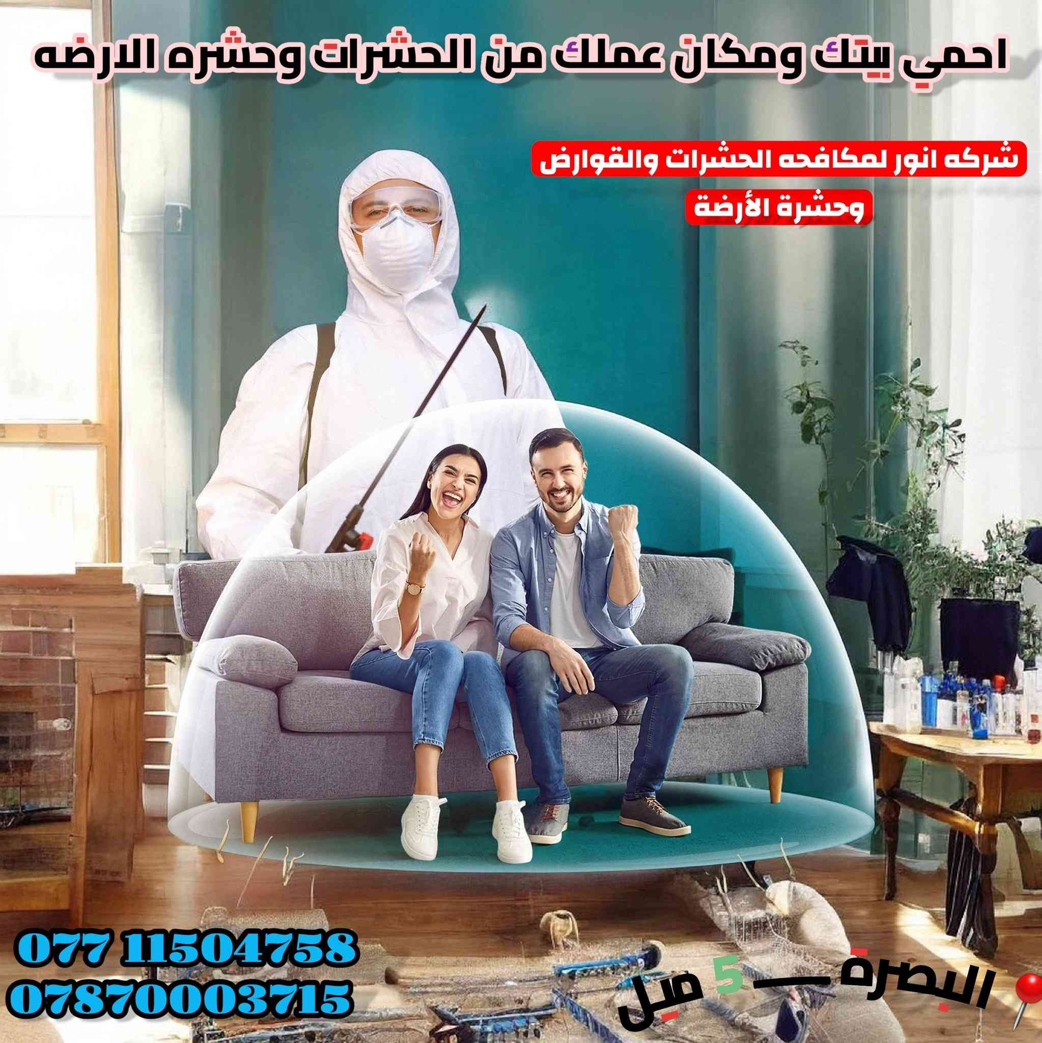 مع اقتراب فصل الصيف وارتفاع درجات الحرارة، تبدأ الحشرات والقوارض وحشرة الأرضة بالانتشار داخل المنازل والمخازن والشركات. شركة أنور لمكافحة الحشرات والقوارض وحشرة الأرضة توفر لكم أفضل الحلول الوقائية والعلاجية باستخدام أحدث الأجهزة والمبيدات الآمنة وبإشراف كادر متخصص. نضمن لكم بيئة نظيفة وآمنة وخالية من الآفات مع سرعة في الاستجابة ودقة في العمل. خدماتنا تشمل: رش المنازل، الشقق، المطاعم، المخازن، الشركات، وعقود صيانة دورية. (معئ ضمان 5 سنوات لمكافحه حشره الارضه ) 💳 الدفع نقدي وإلكتروني متوفر اتصلوا بنا الآن وخلّوا راحتكم علينا. 📞 *********** 📞 *********** 📍 البصرة –5ميل نعمل في جميع محافظات العراق