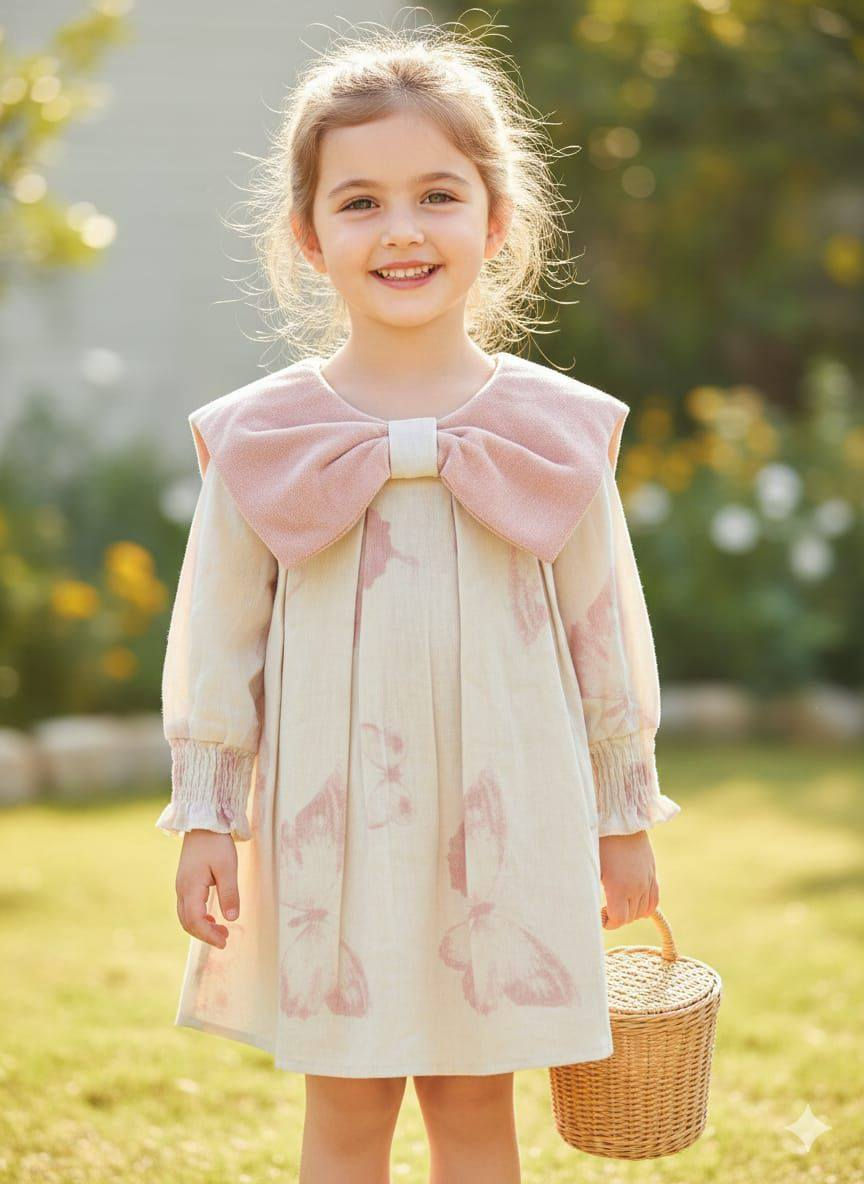 فستان عيد أطفال • مقاسات ١١٠-١٦٠ • أوف وايت مبطن