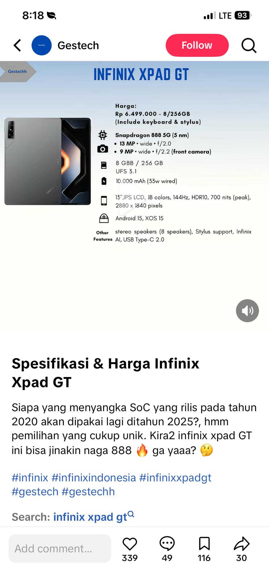 انفنكس باد X gt للبيع الجهاز مفتوح من البوكس فقط غير مستعمل للبيع ***********
