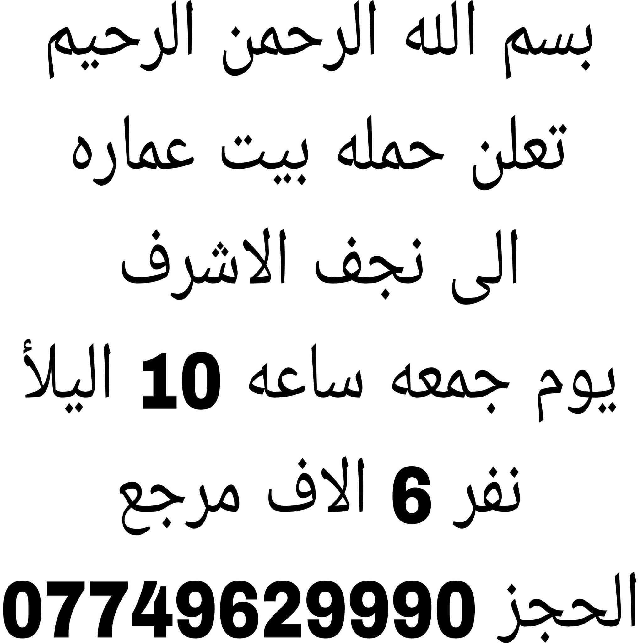 النجف-الكوفة • الخميس ١٠ليلا • ١٠ مقاعد