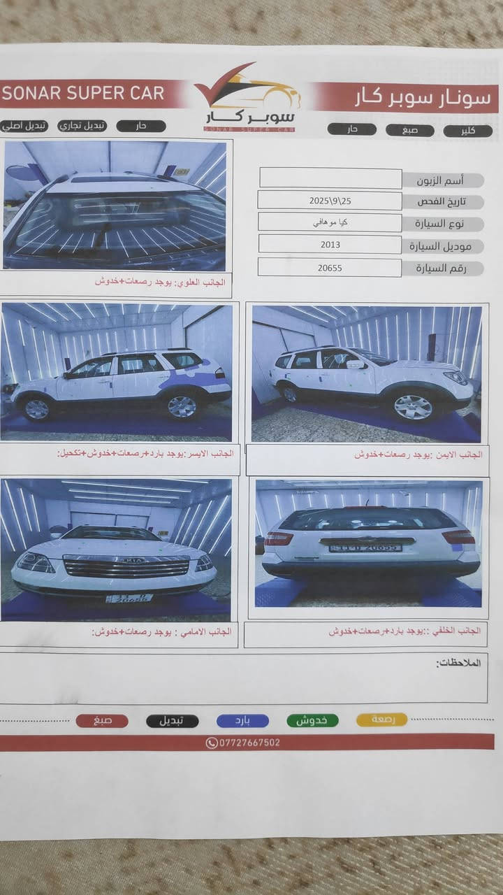 السلام عليكم ورحمه الله وبركاته كيا موهافي ٢٠١٣ خليجي محرك ٣٨٠٠ محرك بلادي گير بلادي ممفتوح الفضل من الله للبيع مستعجل دفع رباعي فول مواصفات ،الفضل لله كل نقص مابيهه السونار مرفق بالصور السعر ١٧٠ ..... مايعجبك السعر .... اكو سيارات ب١٢٠ و١٣٠ و١٥٠ ❤️ وربي يوفق الجميع صلي على محمد وال محمد واعبر المنشور المكان بغداد الشعب شارع الصحه رقم الهاتف وات ساب ***********