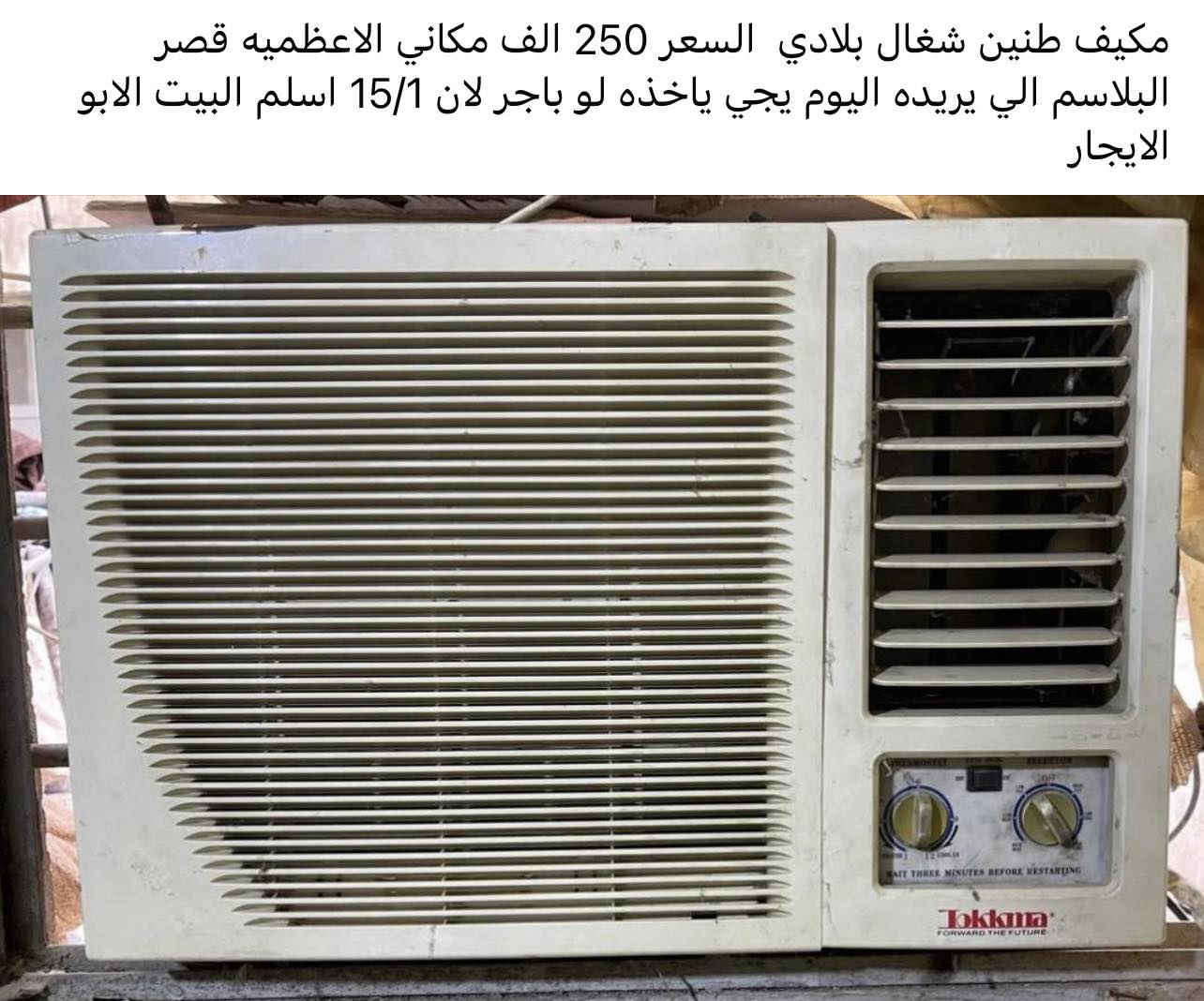 مكيف طنين شغال بلادي السعر 250 الف مكاني الاعظميه قصر البلاسم الي يريده اليوم يجي ياخذه لو باجر لان 15/1 اسلم البيت الابو الايجار **إذا كنت صاحب هذا الإعلان وتريد حذفه لأي سبب، رجاءا أرسل رسالة إلى الدعم الفني**