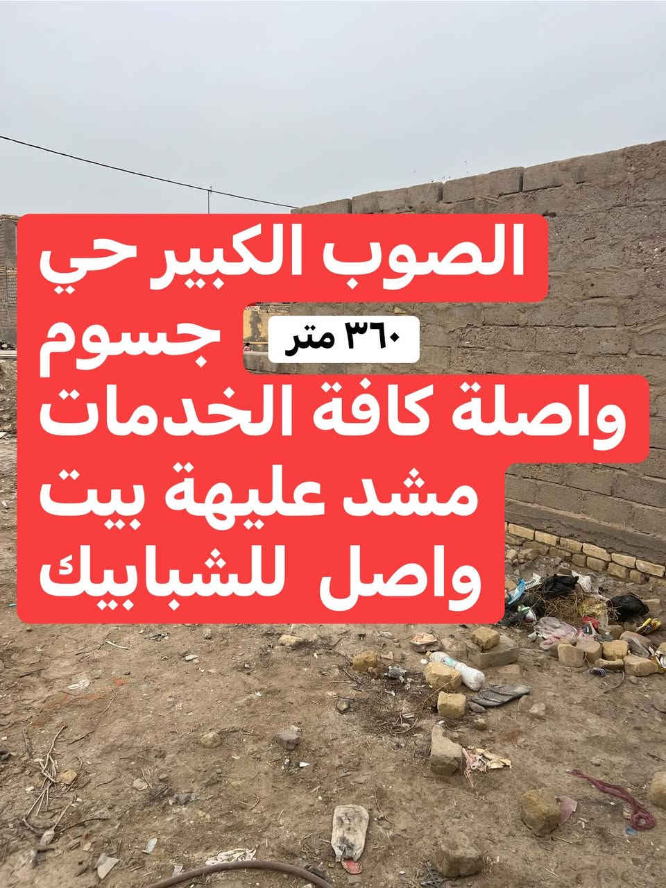 السلام عليكم قطعة زراعي الصوب الكبير حي جسوم ٣٦٠متر مشيد عليهة غرفتين وصالة وستقبال واصل للشبابيك والباقي فارغة مساحة جبيرة واصلهة كل الخدمات ماي ورصيف مقرنص باقي بس التبليط ان شاءالله سعرهة مناسب ١٥ وبيهة مجال **إذا كنت صاحب هذا الإعلان وتريد حذفه لأي سبب، رجاءا أرسل رسالة إلى الدعم الفني**