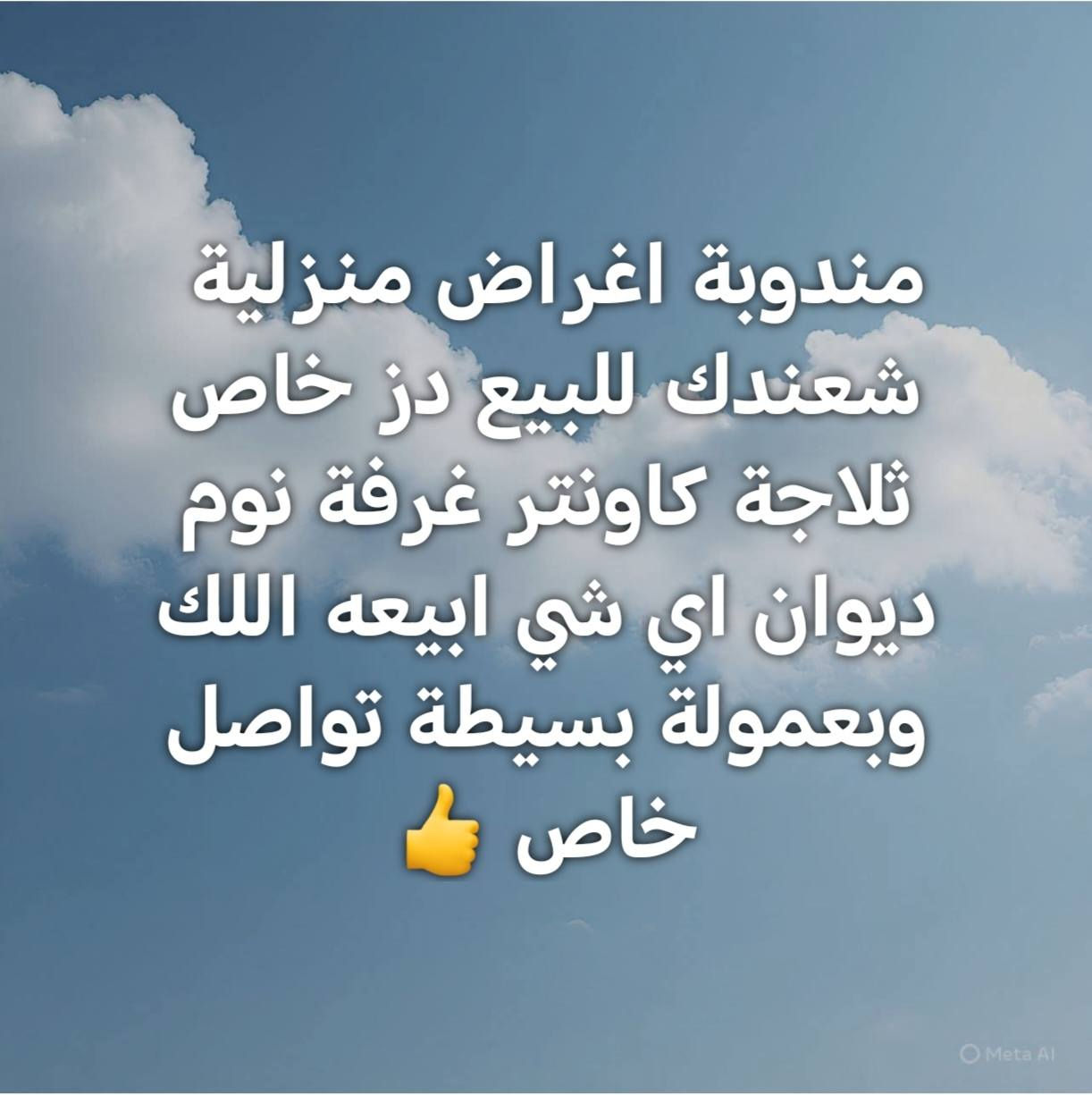 مندوبة أغراض منزلية 🏡 عندك أغراض للبيع وما تعرف شلون تسوّقها؟ دزها خاص 📩 أبيع: ثلاجات، كاونترات، غرف نوم، ديوانيات وكل شي بعمولة بسيطة وتفاهم 💬 موصل, نينوى **إذا كنت صاحب هذا الإعلان وتريد حذفه لأي سبب، رجاءا أرسل رسالة إلى الدعم الفني**