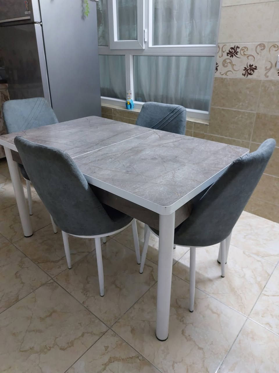 طاولة 4 كراسي • مرمر ثقيل • تركي أصلي