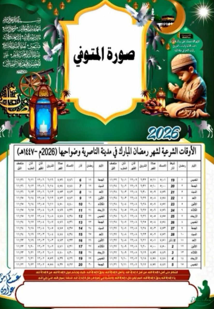طباعة امساكيات شهر رمضان المبارك لعام 2026 م 🌙 ( 100 ) أمساكية ورق زيتي الاصلي بـ (١٥ ) الف دينار ( 200 ) أمساكية ورق زيتي الاصلي بـ (٢٥ ) الف دينار (100) أمساكية ورق عادي بـ (٨ ) الف دينار 🔴 مواصفات الأمساكية :- 1- قياس A4 2- طباعة HD 3- نوع الورق ( حسب الطلب ) 🔰للحجز مراسلة الصفحه او مراسله واتساب *********** او زورونا العكيكة مقابل مديرية ناحية العكيكة #مكتب_الجنوب