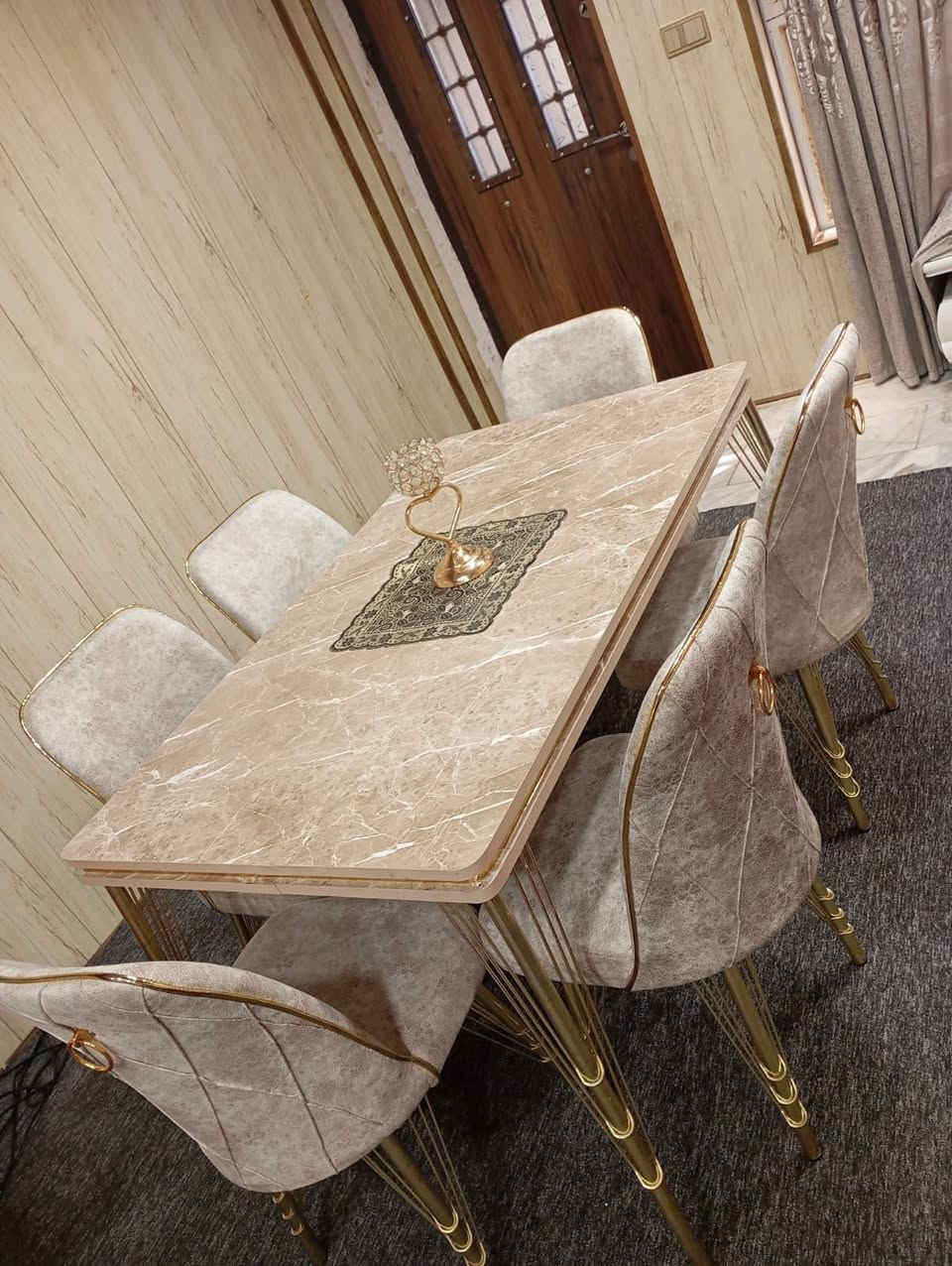 ميز طعام مرمر • ٦ كراسي • ضرر بالكرسي