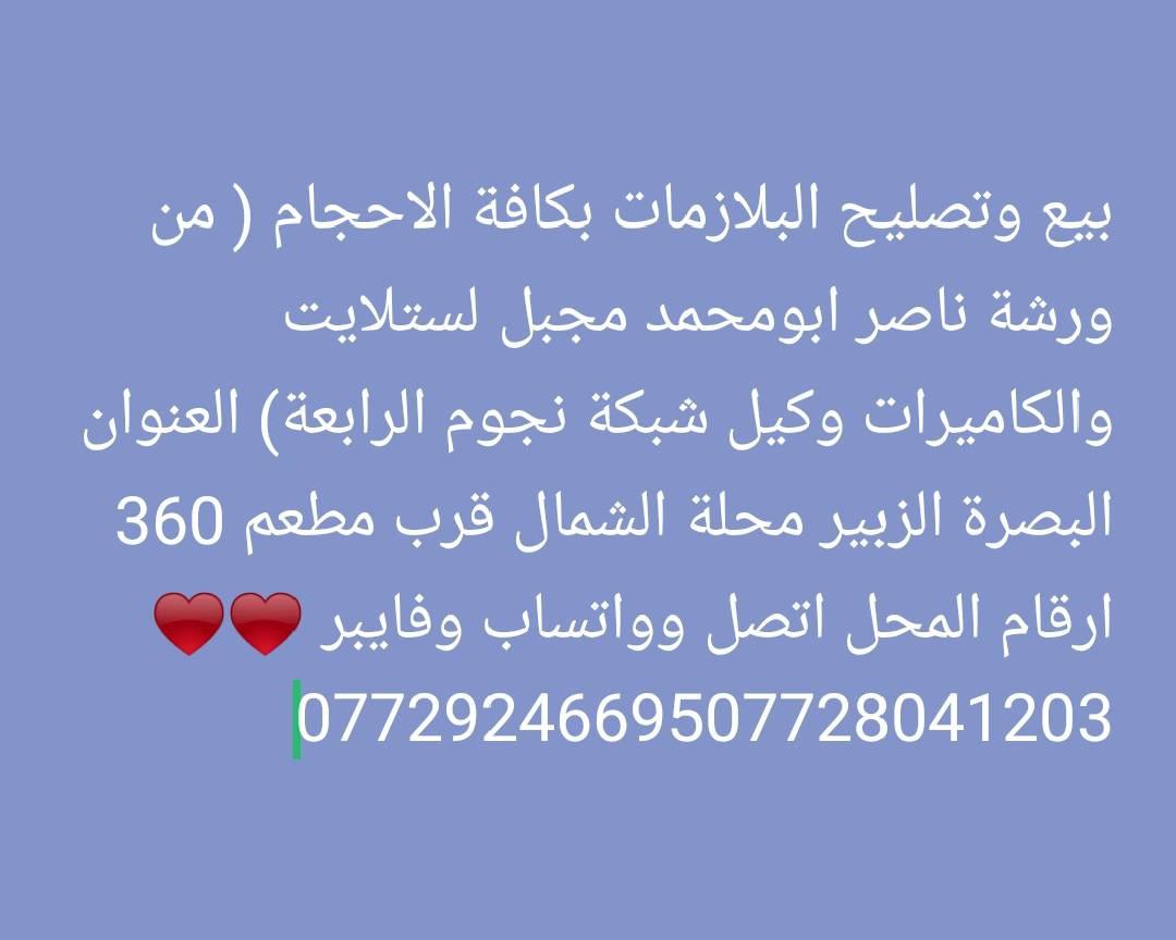 بيع وتصليح البلازمات بكافة الاحجام ( من ورشة ناصر ابومحمد مجبل لستلايت والكاميرات وكيل شبكة نجوم الرابعة) العنوان البصرة الزبير محلة الشمال قرب مطعم 360 ارقام المحل اتصل وواتساب وفايبر ♥ ♥**********************