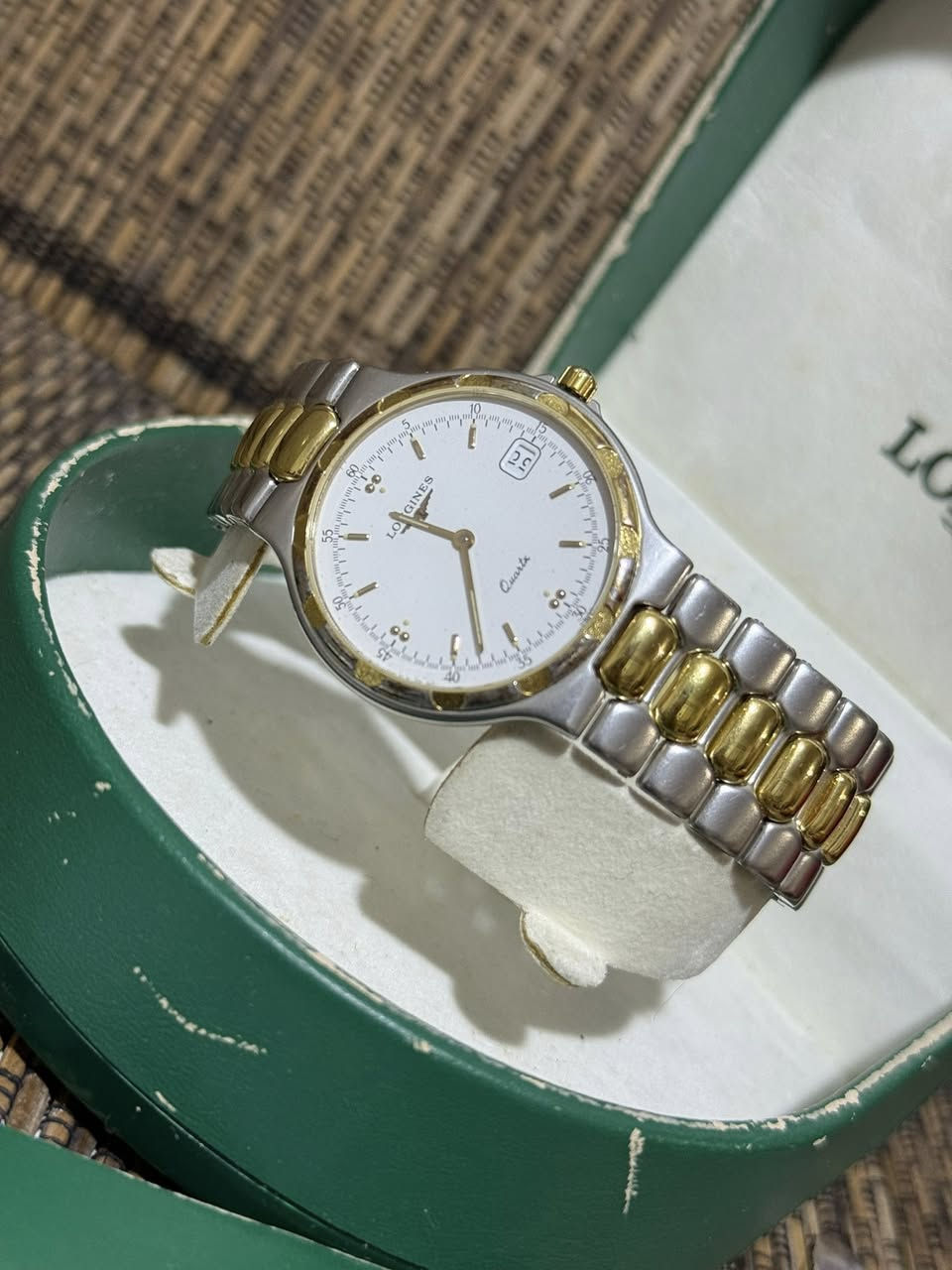 لونجين كوارتز سويسري • قطر ٣٤مم • ذهبي وتيتانيوم