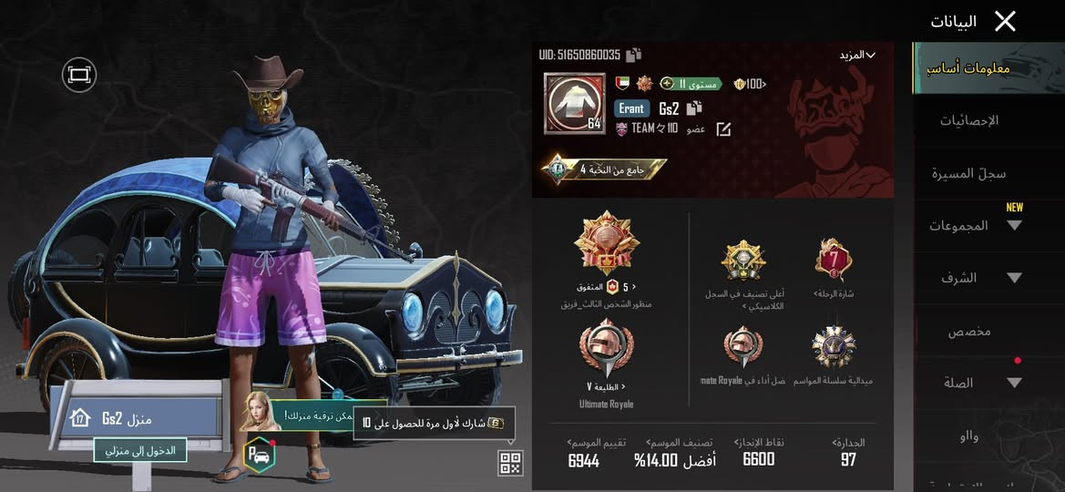 حساب ببجي • مستوى 82 • كونكر موسمين