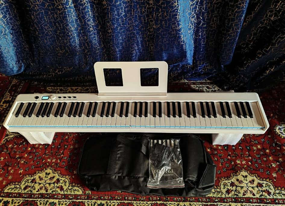بيانو قابل للطي 88 مفتاح بي اصوات مختلفة وايقاعات وهواي شغلات وتكدر تستخده ك سبيكر وتربط علي بلوتوث ملحقاته كاملة حقيبه ودواسه وكيبل شحن وكيبل اواكس جاي يبيعونه بالمحلات ب225 الف انا ابيعة ب115 الف مع التوصيل الي يحب يسمع صوته هذا فيديو مراجعه اله باليوتيوب https://youtu.be/RX8F7T8buDU?si=ecEN1FuS_-Rdyo_B **إذا كنت صاحب هذا الإعلان وتريد حذفه لأي سبب، رجاءا أرسل رسالة إلى الدعم الفني**