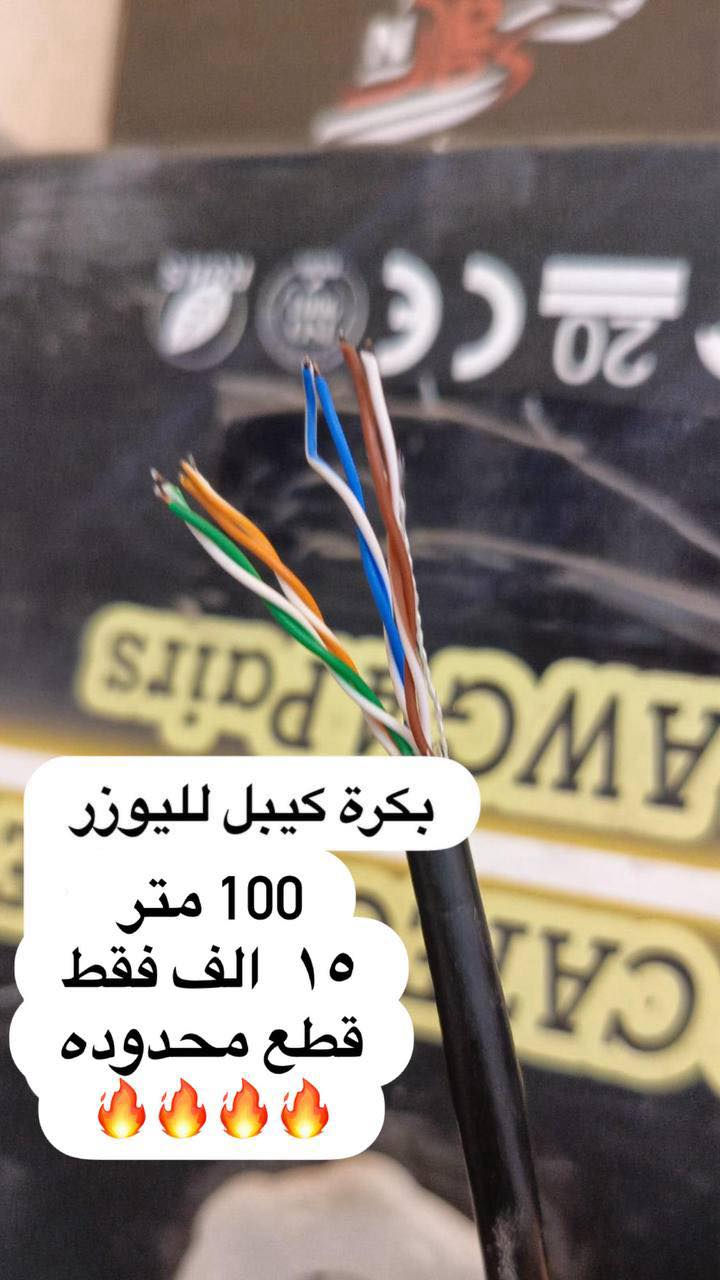 عندك يوزريه هواي وتريد كيبل بسعر مناسب جبتلكم بكره ١٥ الف 😍 ١٠٠ متر كات٥ عملاقه شغل فول **إذا كنت صاحب هذا الإعلان وتريد حذفه لأي سبب، رجاءا أرسل رسالة إلى الدعم الفني**