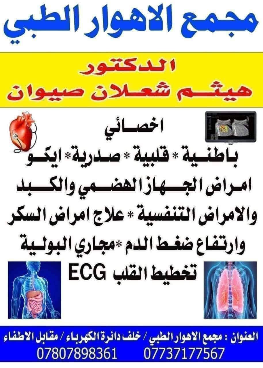 اليوم في مجمع الاهوار الطبي _خلف دائرة الكهرباء _مقابل دفاع مدني _بداية شارع الغميجه يتواجد #اخصائي_الباطنية_والقلبية_وايكو_القلب الدكتور هيثم شعلان صيوان لحجز والاستفسار *********** *********** @متابعين @إشارة