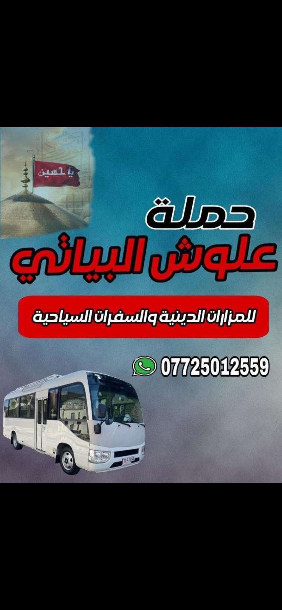 {{ إلى أهالي بسمايه الكرام }} تنطلق حمله علوش البياتي ❤️👤 يوم الاحد الى:- الامام الكاظم ع 🕌🕋 الساعه 4 عصرا 👑👑👑👑👑👑 ✨✨✨✨✨✨ يوم الأحد إلى :- كربلاء المقدسه ع🕌🕋 الساعه 4 عصرا 👑👑👑👑👑👑 ✨✨✨✨✨✨ يوم الاحد ال:- مزار وألعاب تاج الدين ع 🕌🕋 الساعه 4 عصرا النفر 2500 الفين ونص مرجع 👑👑👑👑👑👑 ✨✨✨✨✨✨ يوم الاثنين إلى :- كربلاء المقدسه ع 🕌🕋 الساعه 4 عصرا 👑👑👑👑👑👑 ✨✨✨✨✨✨ يوم الاثنين إلى:- مول المنصور شارع الرواد الساعه 4 عصرا 👑👑👑👑👑👑 ✨✨✨✨✨✨ يوم الاثنين إلى :- الأمام الكاظم ع 🕌🕋 الساعه 4 عصرا 👑👑👑👑👑👑 ✨✨✨✨✨✨ يوم الثلاثاء إلى :- العلويه مريم ع 🕌🕋 سيد دريس الساعه 4 عصرا 👑👑👑👑👑👑 ✨✨✨✨✨✨ علما تجمعنا الأول مقابيل المول 🚦🚥 جماعت B نجيكم لباب العماره 🚦🚥 🎇🎇🎇🎇🎇🎇 يوجد نت داخل السيارات 📲 ✨✨✨✨✨✨ للحجز والاستفسار ☎️📞 *********** واتساب اتصال