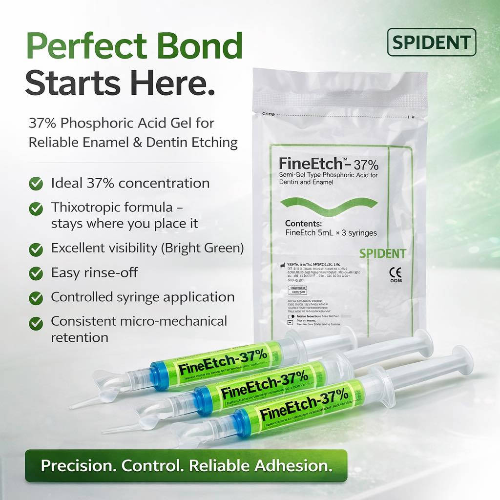FineEtch 37% من شركة Spident 🇰🇷 الكورية شنو يميزه عن غيره؟ ✔️ قوام Thixotropic يعني يبقى بمكانه وما يجري، حتى بالمناطق العمودية. ✔️ لون أخضر واضح يسهّل الرؤية أثناء التطبيق ويضمن توزيع متساوي. ✔️ 37% تركيز مثالي توازن بين فعالية الحفر وسلامة النسيج. ✔️ Easy Rinse-off ينغسل بسهولة بدون بقايا. ✔️ نتيجة Etching Pattern منتظمة يعطي retention ميكانيكي أفضل وين احنا؟📍📍‼️ دنتست ستور لمستلزمات طب الاسنان بغداد / باب المعظم / قرب فرع مصرف الرافدين للحجز والاستفسار: 0777 935 6962 0771 571 6342