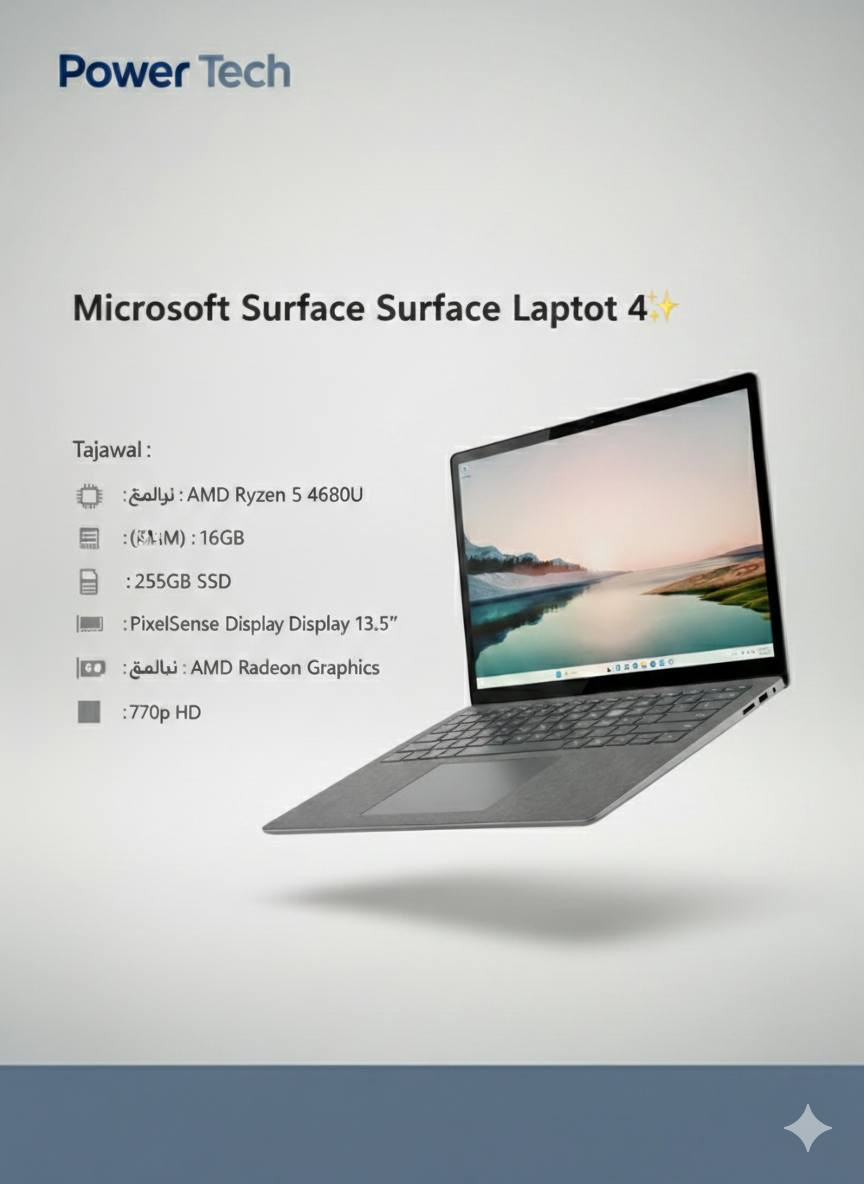 📢✨ عرض رمضان المبارك من Power Tech ✨📢 بمناسبة قرب حلول شهر الخير والبركة 🌙 يسعدنا أن نعلن عن تخفيضات خاصة ومحدودة على أقوى أجهزة Microsoft الأصلية 🎁🔥 💻 الأجهزة المشمولة بالعرض: 🔹 Microsoft Surface Laptop Go 3 – خفة وأناقة وأداء عملي يناسب الدراسة والعمل اليومي. 🔹 Microsoft Surface Laptop 4 – قوة أداء وتصميم فاخر يلبي احتياجاتك الاحترافية بكل سلاسة. 📥لمعرفة السعر شاركنا بتعليق. **إذا كنت صاحب هذا الإعلان وتريد حذفه لأي سبب، رجاءا أرسل رسالة إلى الدعم الفني**
