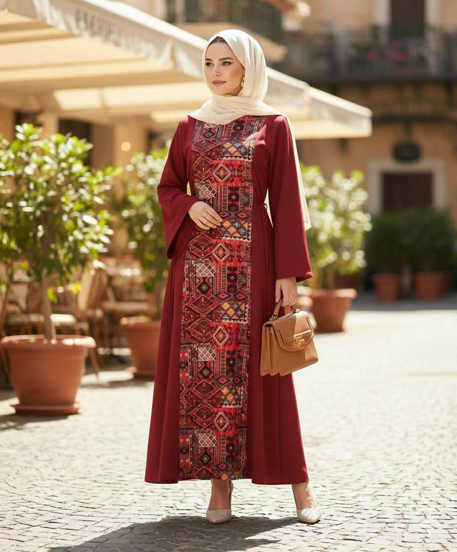 فستان دابل ايطالي • طبع دجيتال • مقاسات ٣٨-٤٨