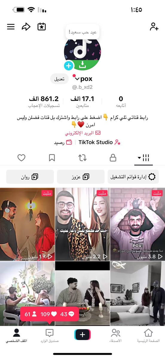 تيك اوك عراقي كله حقيقي تفاعله كلش قوي بثواني ستوري عالي مشاهداته بالملايين دايصعد يومياً + ربط نضيف السعر خاص **إذا كنت صاحب هذا الإعلان وتريد حذفه لأي سبب، رجاءا أرسل رسالة إلى الدعم الفني**