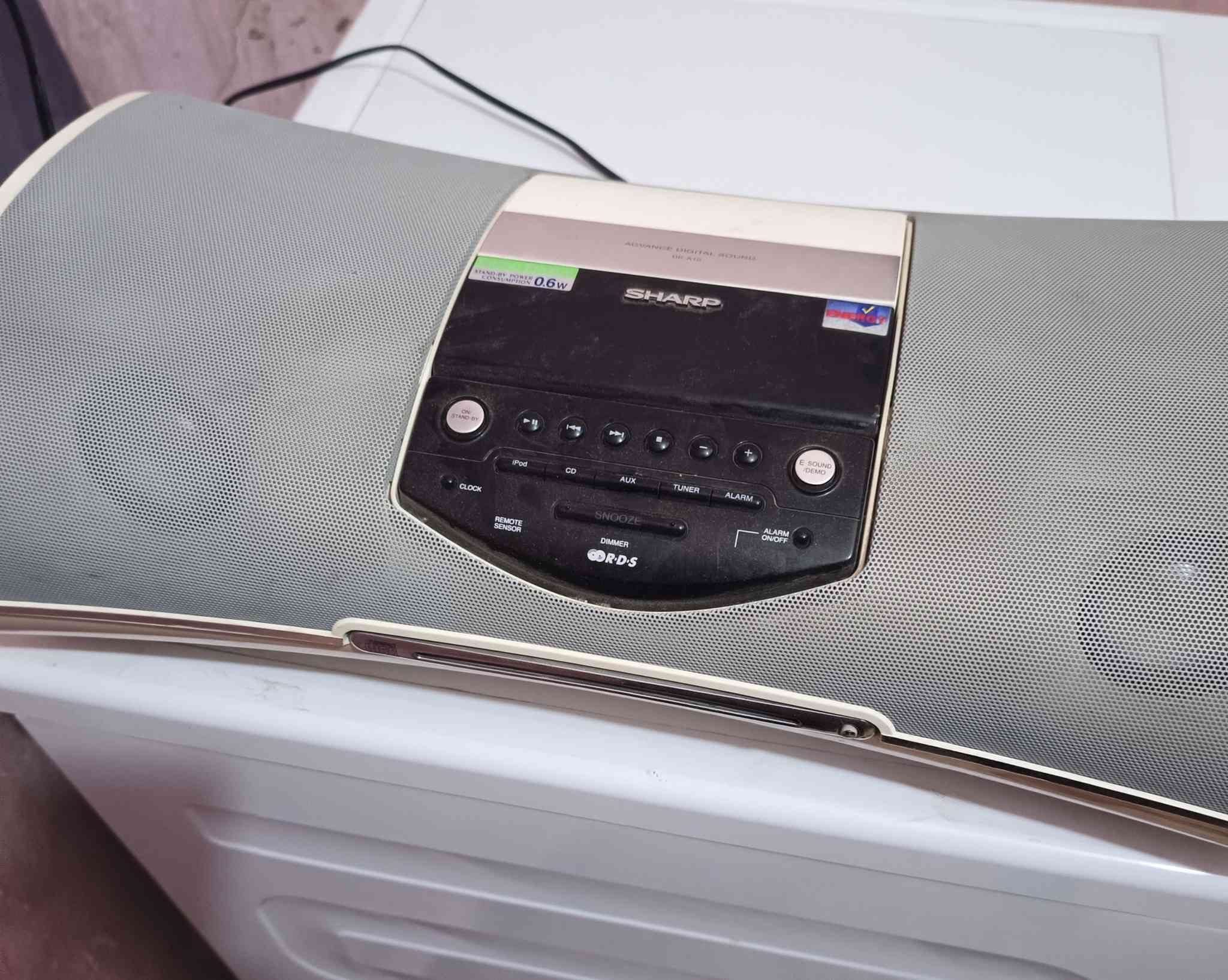 🔊 جهاز صوتي SHARP أصلي بحالة جيدة للبيع • صوت نقي وقوي • مشغل CD + راديو FM • مدخل AUX • منبه وساعة • شغال 100% بدون مشاكل **إذا كنت صاحب هذا الإعلان وتريد حذفه لأي سبب، رجاءا أرسل رسالة إلى الدعم الفني**