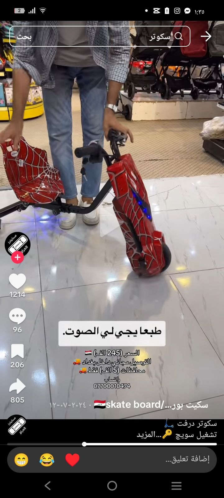 حبايب عدي سكوتر شحن نفس هاذا تمامن همين ابو السبيدرمان للبيع سعر 70بيه مجال **إذا كنت صاحب هذا الإعلان وتريد حذفه لأي سبب، رجاءا أرسل رسالة إلى الدعم الفني**