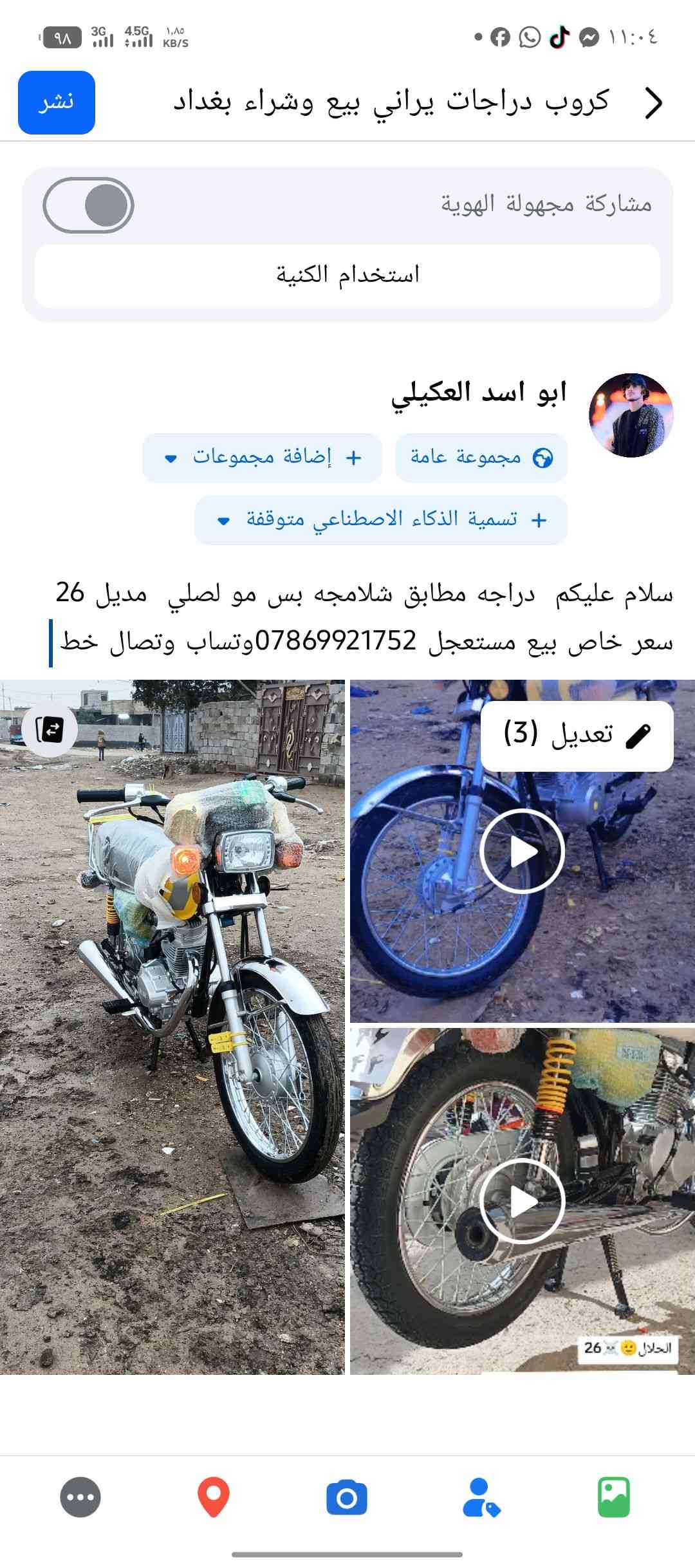 سلام عليكم دراجه مطابق شلامجه بس مو لصلي مديل 26 سعر خاص بيع مستعجل ***********وتساب وتصال خط