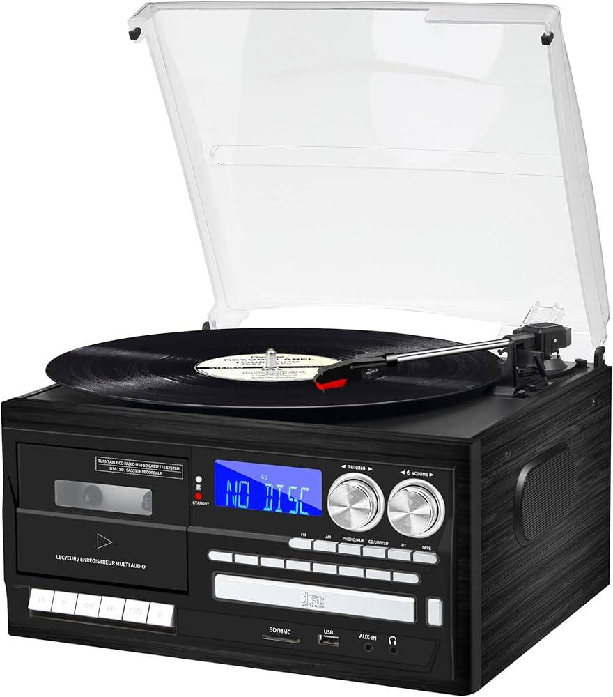 الجهاز هو نظام موسيقي متعدد الاستخدامات يحمل العلامة التجارية Jopostar. متعدد الوظائف: يشتمل على مشغل أسطوانات فينيل بثلاث سرعات، ومشغل أقراص مضغوطة (CD)، ومشغل أشرطة كاسيت. الاتصال اللاسلكي: يدعم تقنية البلوتوث لتشغيل الموسيقى من الهواتف الذكية أو الأجهزة الأخرى. الوسائط الرقمية: يحتوي على منفذ USB وفتحة لبطاقة SD لتشغيل الملفات الرقمية وتسجيل الموسيقى. راديو مدمج: يأتي مع موالف راديو AM/FM للاستماع إلى البث المباشر. **إذا كنت صاحب هذا الإعلان وتريد حذفه لأي سبب، رجاءا أرسل رسالة إلى الدعم الفني**