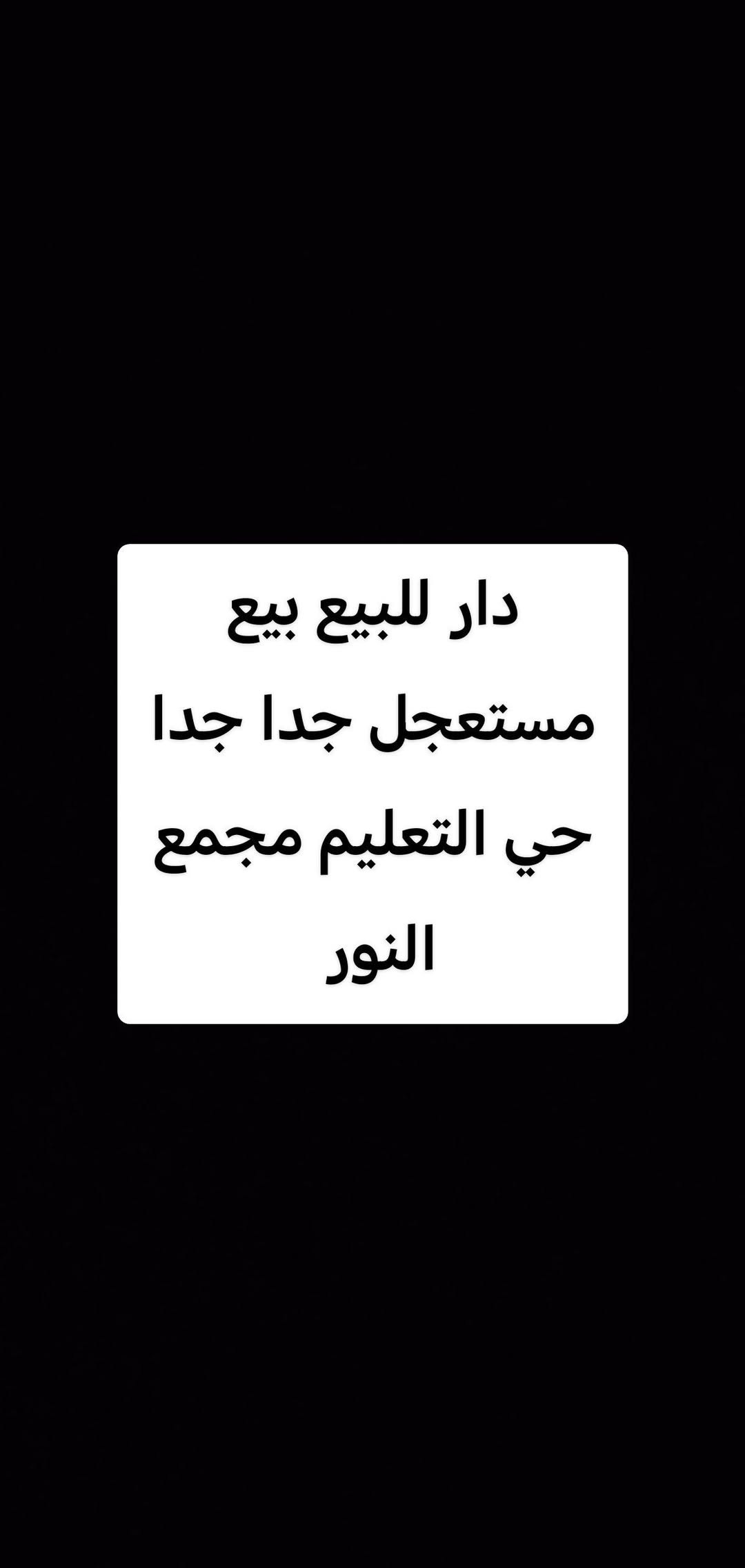 حصرياً – دار للبيع #بيع_مستعجل جداً جداً 📍 العنوان: مجمع النور 📐 المساحة: 120 متر – ركن مربع 🏢 تابع: غرفة التجارة 🛣️ الموقع: شارع 15 وشارع 12 ⭐ موقع جداً جداً مميز 🏠 الدار: طابقين 🔹 الطابق الأول: كراج – تواليت – استقبال – مطبخ – هول – غرفة نوم 🔹 الطابق الثاني: 3 غرف نوم – هول – صحيات فرصة ممتازة وسعر مناسب للبيع المستعجل. 📞 للاستفسار والاتصال: *********** *********** 📱 اتصال & واتساب
