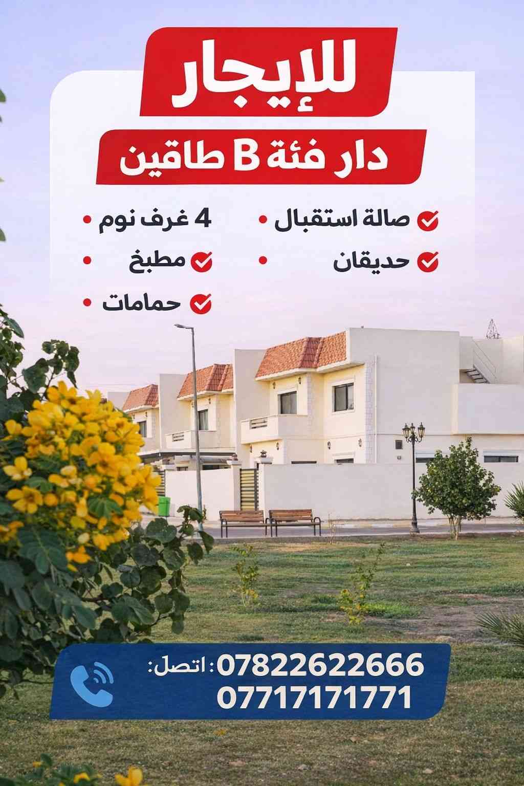 للإيجار – لا تفوّت الفرصة 🚨 🏡 دار مميّزة داخل مدينة السلام السكنية دار فئة B بتصميم أنيق وموقع هادئ يوفّر الراحة والأمان لعائلتك ✨ المواصفات: مساحة الدار 250m ✔️ طابقين ✔️ 4 غرف نوم واسعة ✔️ صالة استقبال ✔️ مطبخ ✔️ حديقتان ✔️ 4 حمّامات 🔒 أمان عالي داخل المجمع 🌿 بيئة نظيفة ومرتّبة 📍 موقع مثالي للسكن العائلي 📞 احجز الآن قبل النفاد: *********** *********** 🔥 فرصة حقيقية للسكن الراقي داخل مجمع سكني متكامل 🔥