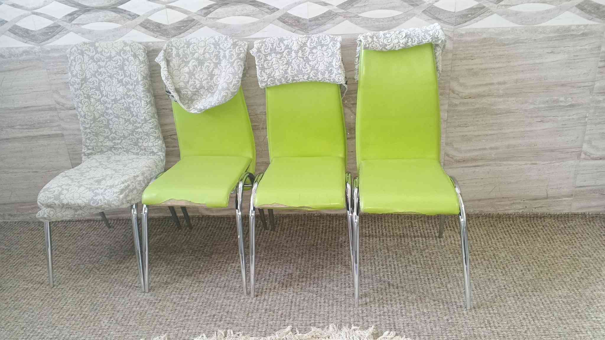4 كراسي استيل المقعد والتچوه خشب مدوشم جلددد وياهن 4 تلبيسات سعر الكرسي 15الف **إذا كنت صاحب هذا الإعلان وتريد حذفه لأي سبب، رجاءا أرسل رسالة إلى الدعم الفني**