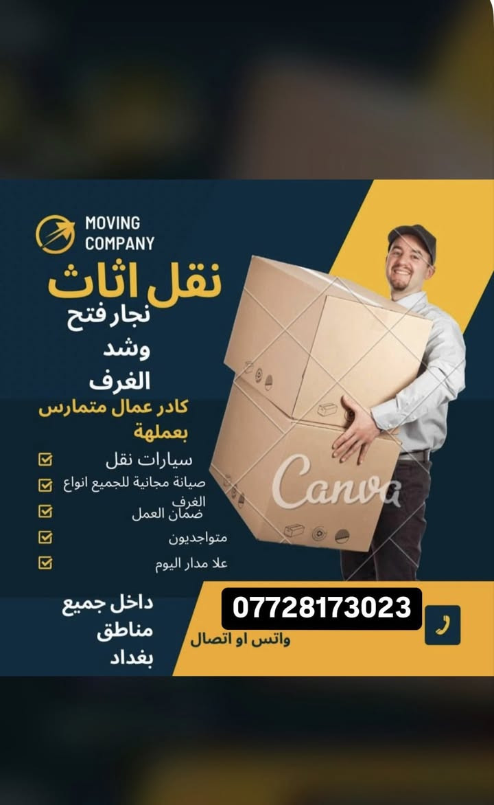 خدمات لنقل الاثاث المنزلي انقل_اثاثك_وانت_مطمئن لأننا_بنقدملك👇 عمال_يمتلكون_خبره_على_أعلى_مستوى☑️ نجاريين_فك_وتركيب_الاثاث_التركي_الايطالي سيارات_كيا_نقل_الأثاث 🚛🚛 اتصل_ولا_تتردد_على_الواتساب_او الفايبر *********** _لنقل_الاثاث_المنزلي_داخل_بغداد أسعار مناسبة جداً مصداقيتنا سر نجاحنا🔱 لسنا الوحيدين لاكننا الافضل 🪐